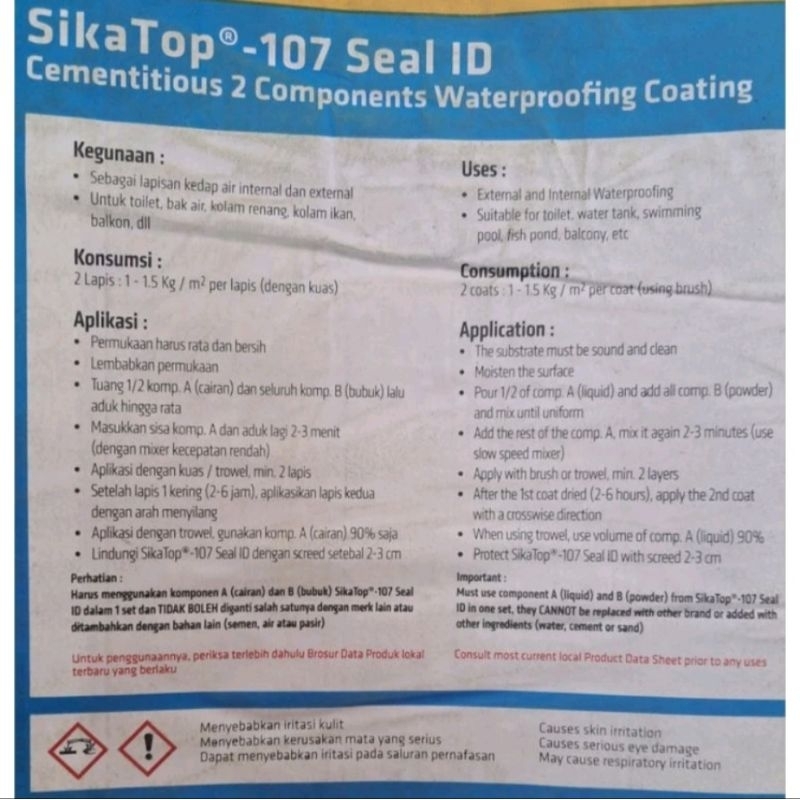 Sika Top 107 Set 25kg 20kg Semen + 5kg Cairan SikaTop 107 Seal ID Mortar WaterPR0of 25kg