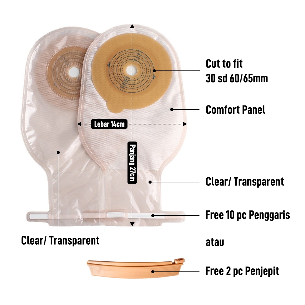 COLOSTOMY BAG 10PCS KANTONG KOLOSTOMI DEWASA ONE-PIECE OSTOMY POUCH OSTOMY 60/65MM