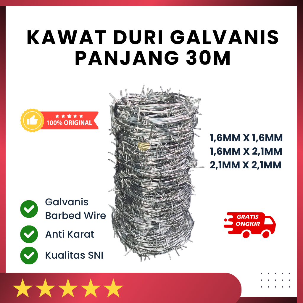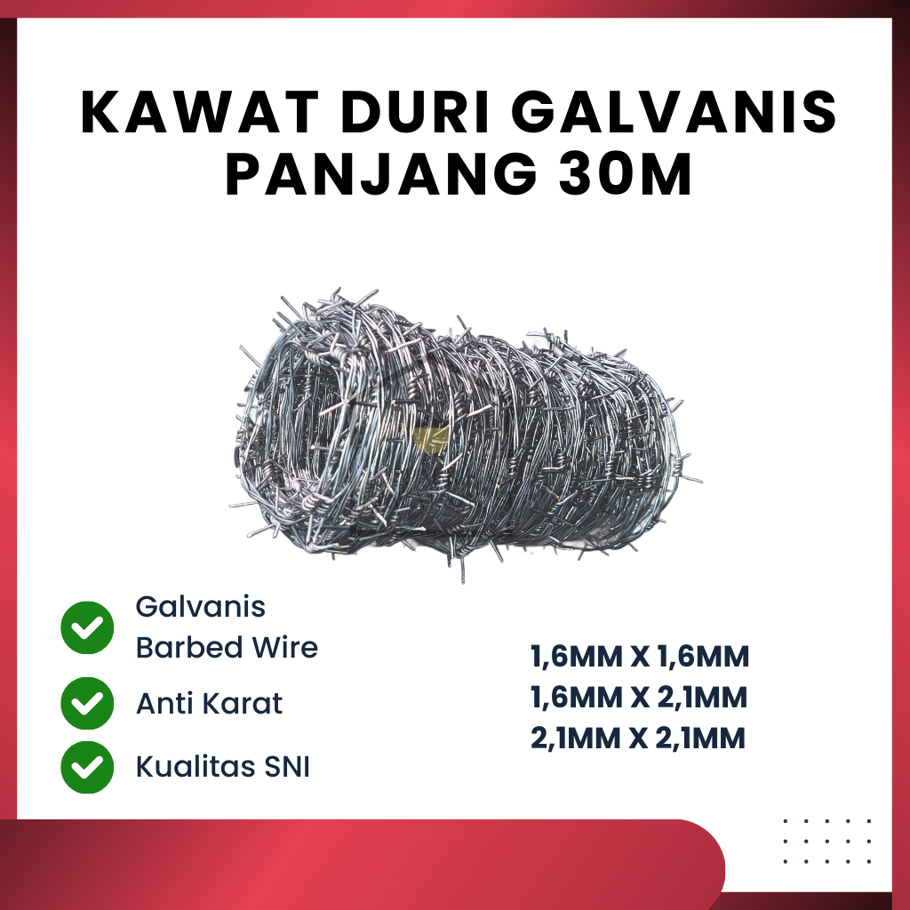 Kawat Duri Galvanis Barbed Wire Anti Tahan Karat 1,6MM/2,1MM Panjang 30 Meter