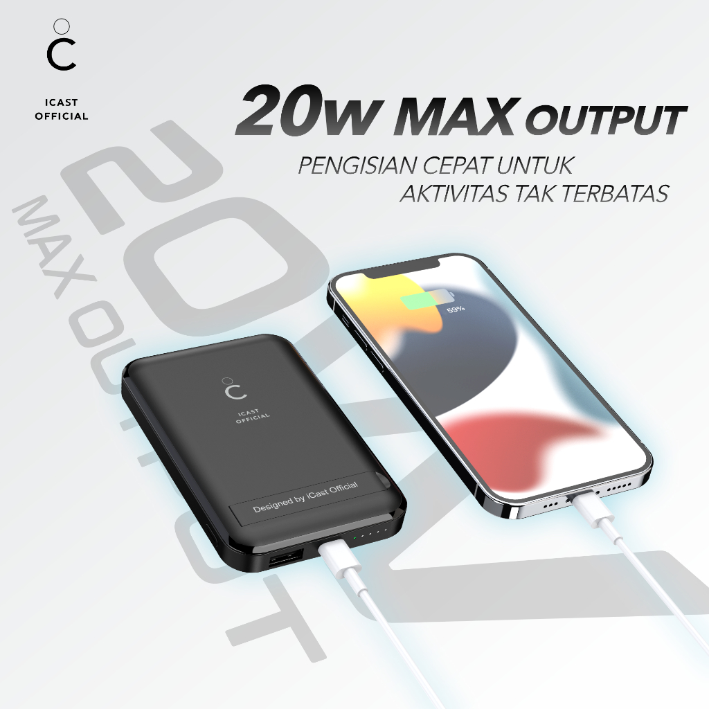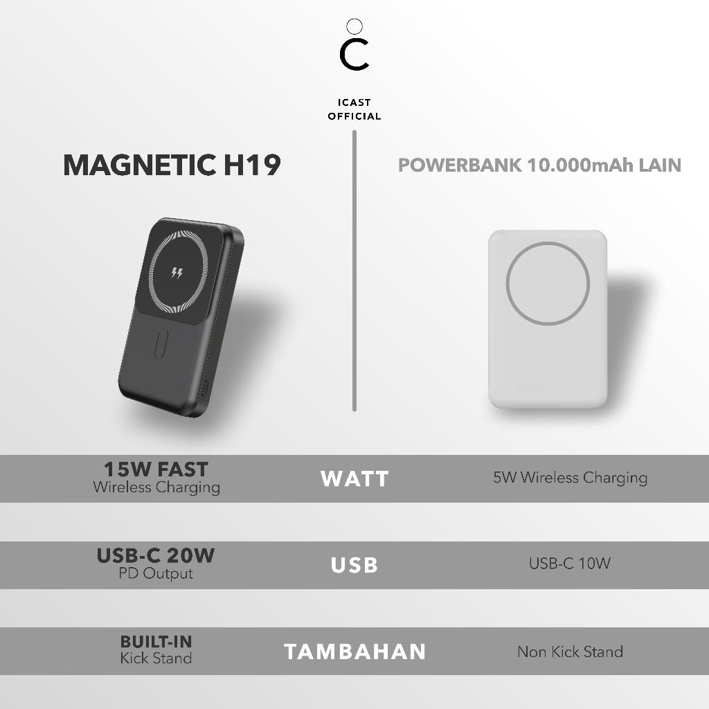 iCast H19 Powerbank Magnet 10000 mAh Fast Charging 20W PD & 15W Magnetic Charger