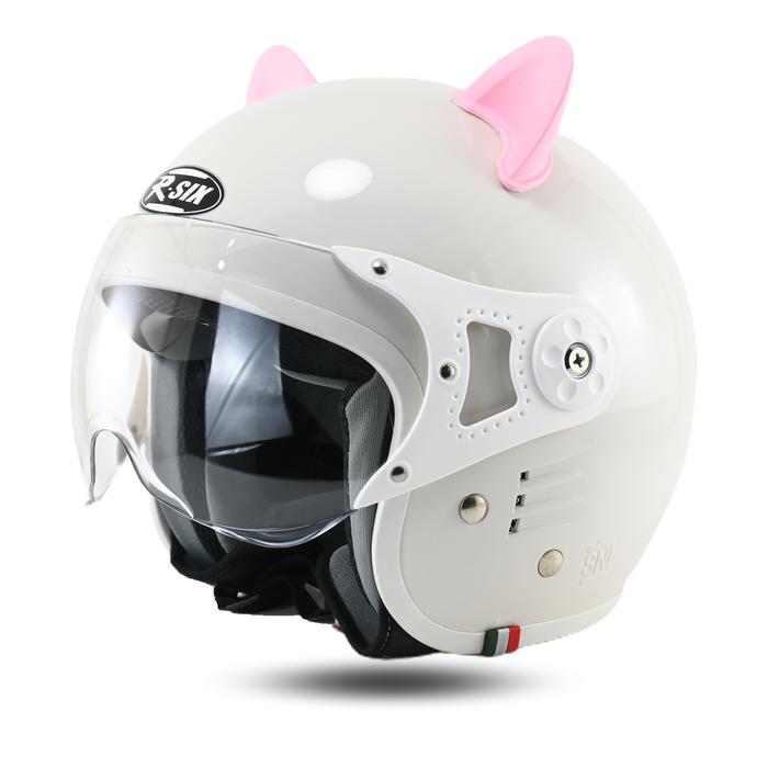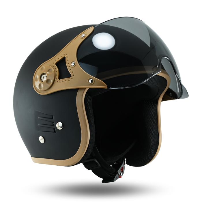 Helm Half Face Helm Bogo Helm Retro Wanita Pria Kekinian Kaca Pilot sudah SNI Motorcycle - BLACK DOFF LIST BROWN, CAT