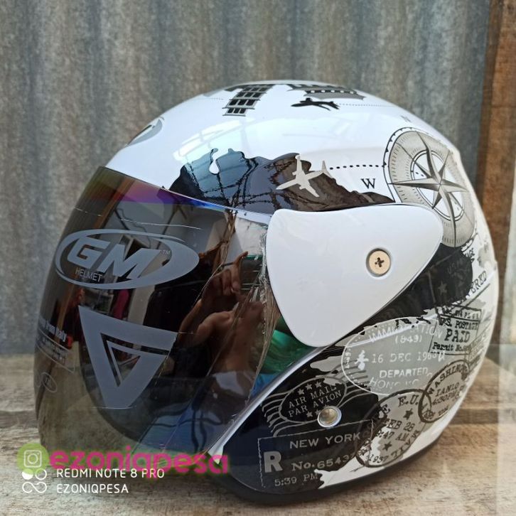 Helm Half Face Helm GM EVO Motif TRAVEL WHITE TOSCA RED BLACK DOFF