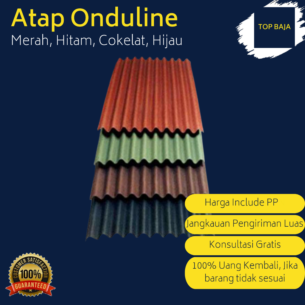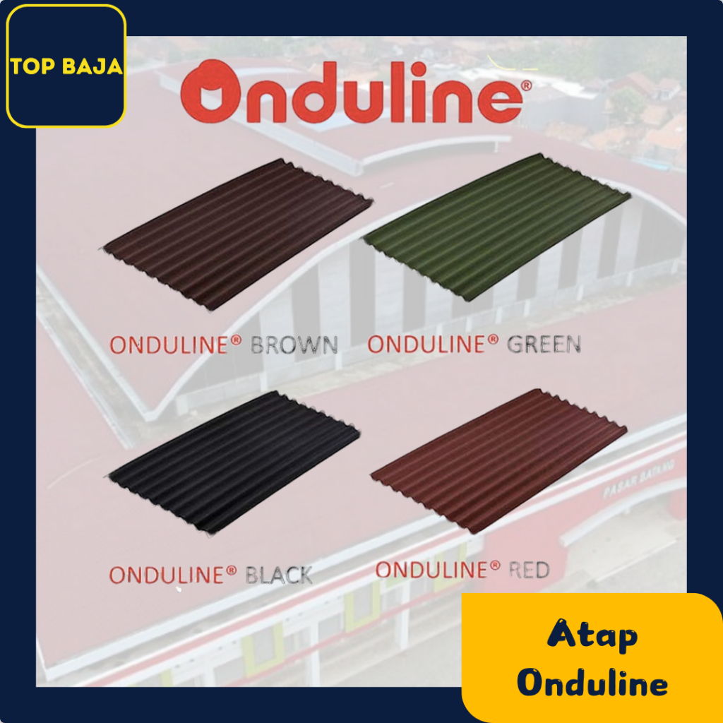 Onduline Genteng Tile Atap Bergelombang Bitumen Classic 95cm X 200cm Orginal warna Merah, Hitam, Cokelat dan Hijau Barang baru atau tidak bekas dan harga termurah sesuai kualitas se Jabodetabek