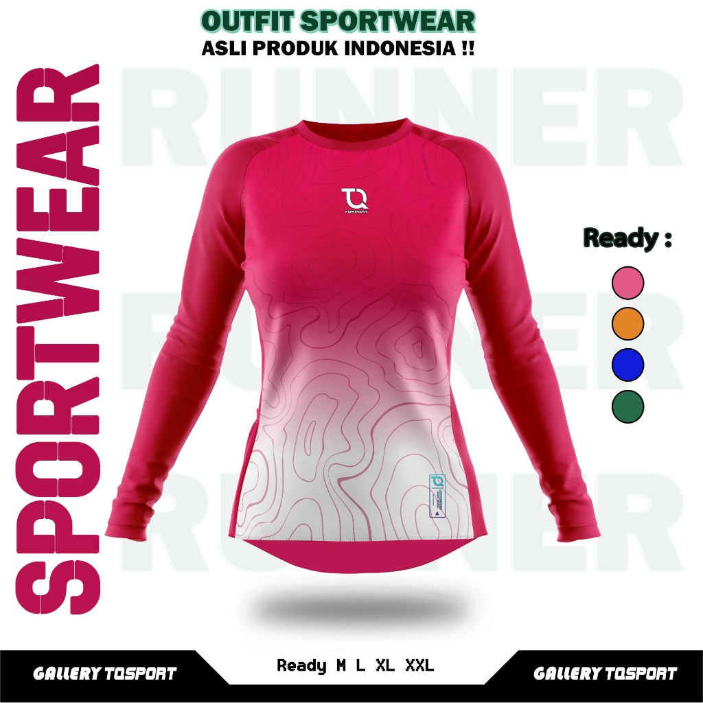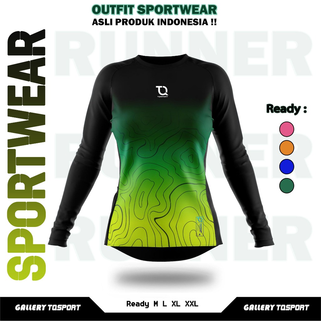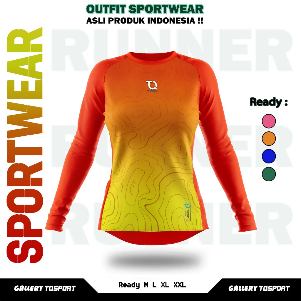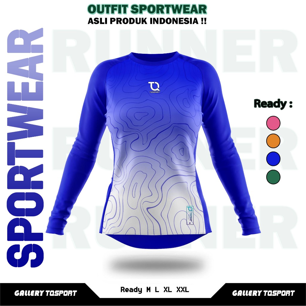 Baju Olahraga Wanita Printing Atasan Kaos Lengan Panjang Olahraga Senam Gym Fitness Running