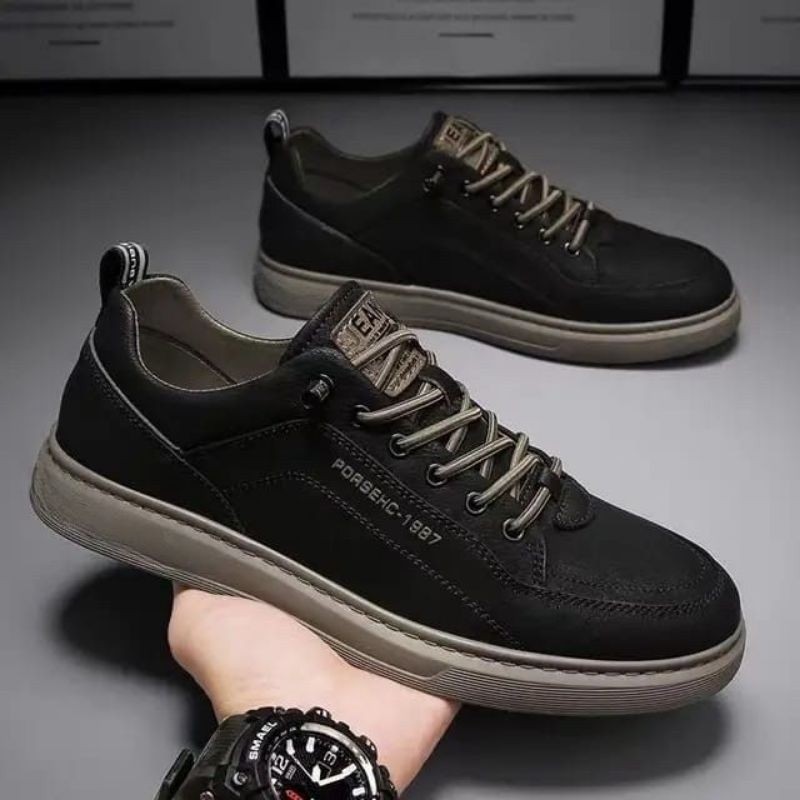 Sepatu Pria Sneakers Casual Unisex Tali Hitam Formal Sepatu Sneakers Sekolah Full Blk Kekinian