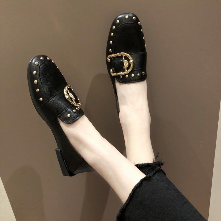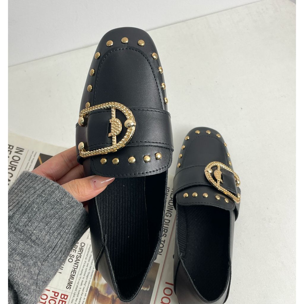 Sepatu Kulit Kecil Keling Kasual Wanita/Sepatu Wanita Gaya Inggris/Sepatu Flat Serbaguna 2025