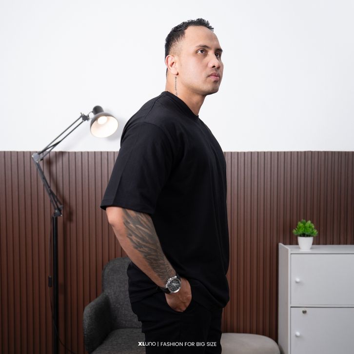 XLUNO Jonny Tee Black Kaos Pria Jumbo Katun Big Size Lengan Pendek