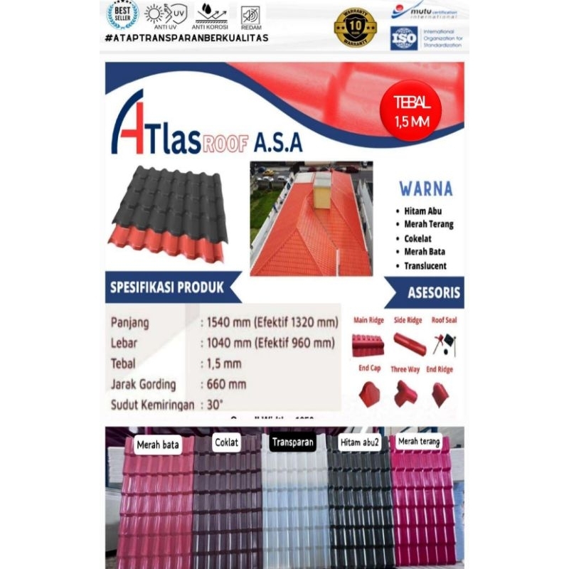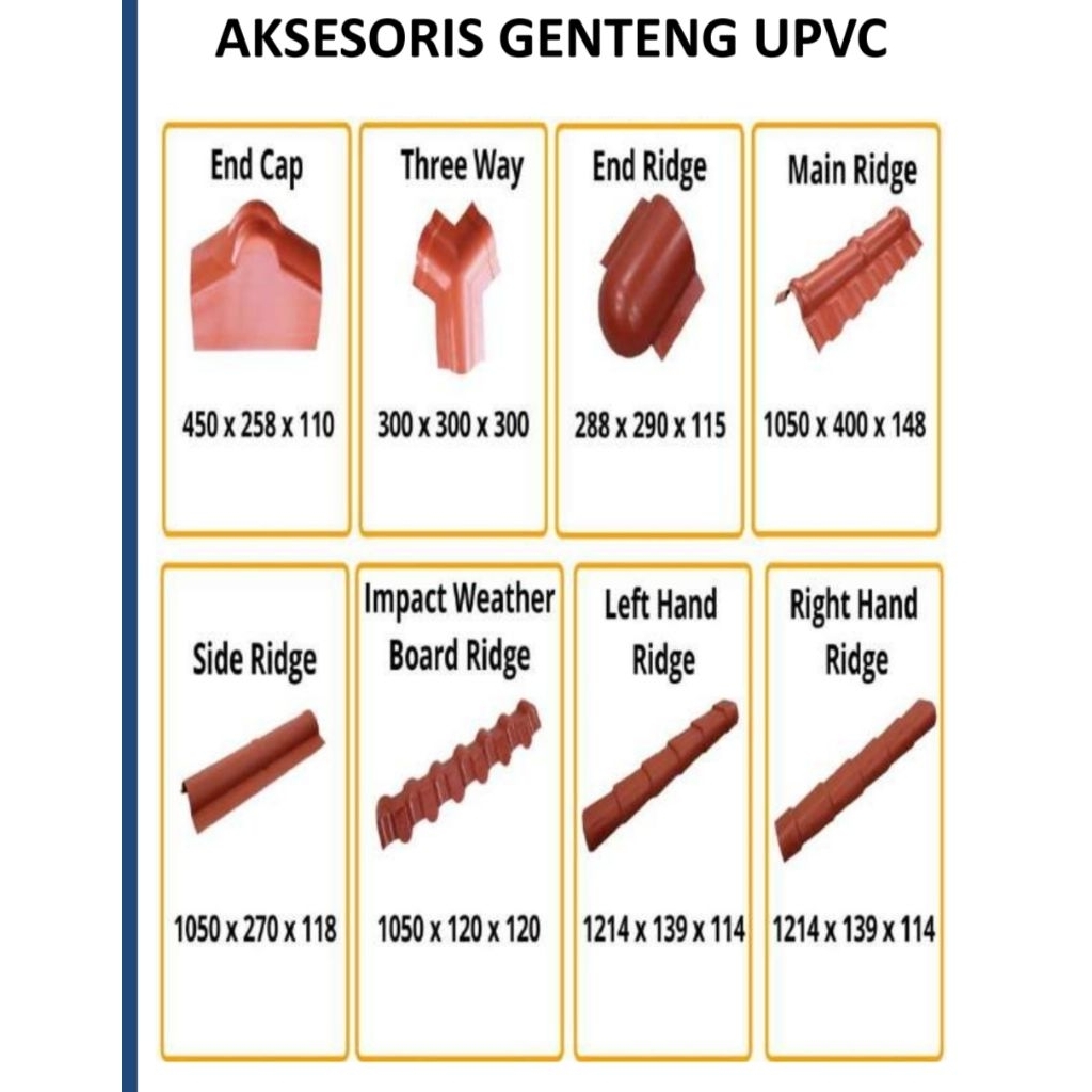End Ridge, Main Ridge, End Cap, Impact Board Ridge, Left Hand Ridge, Side Ridge, Transfaran, Three Way, Merah Bata, Hitam