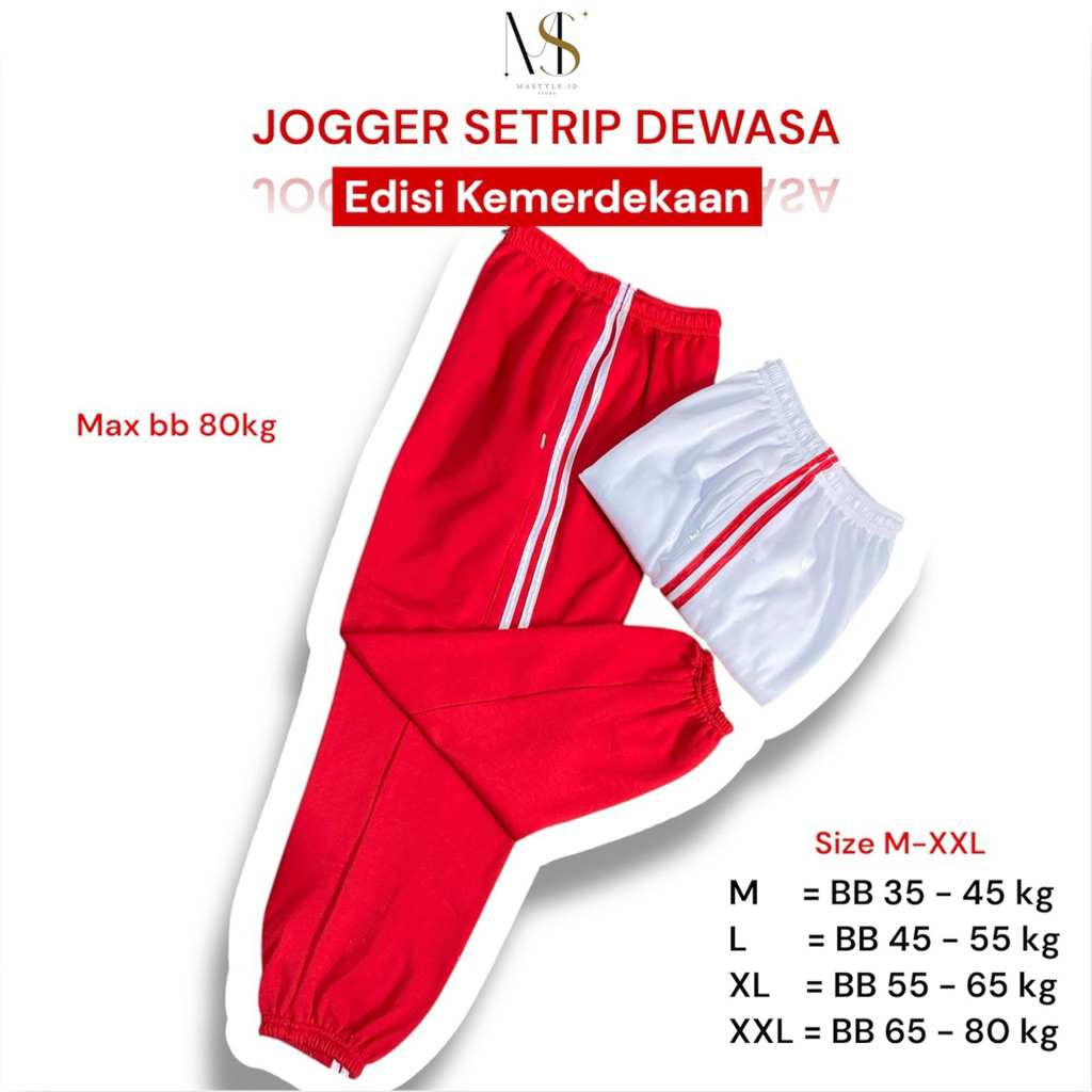 Mastyle Celana Jogger Merah Putih Lis Strip Dewasa Sweatpants Jogger Sport Edisi Kemerdekaan