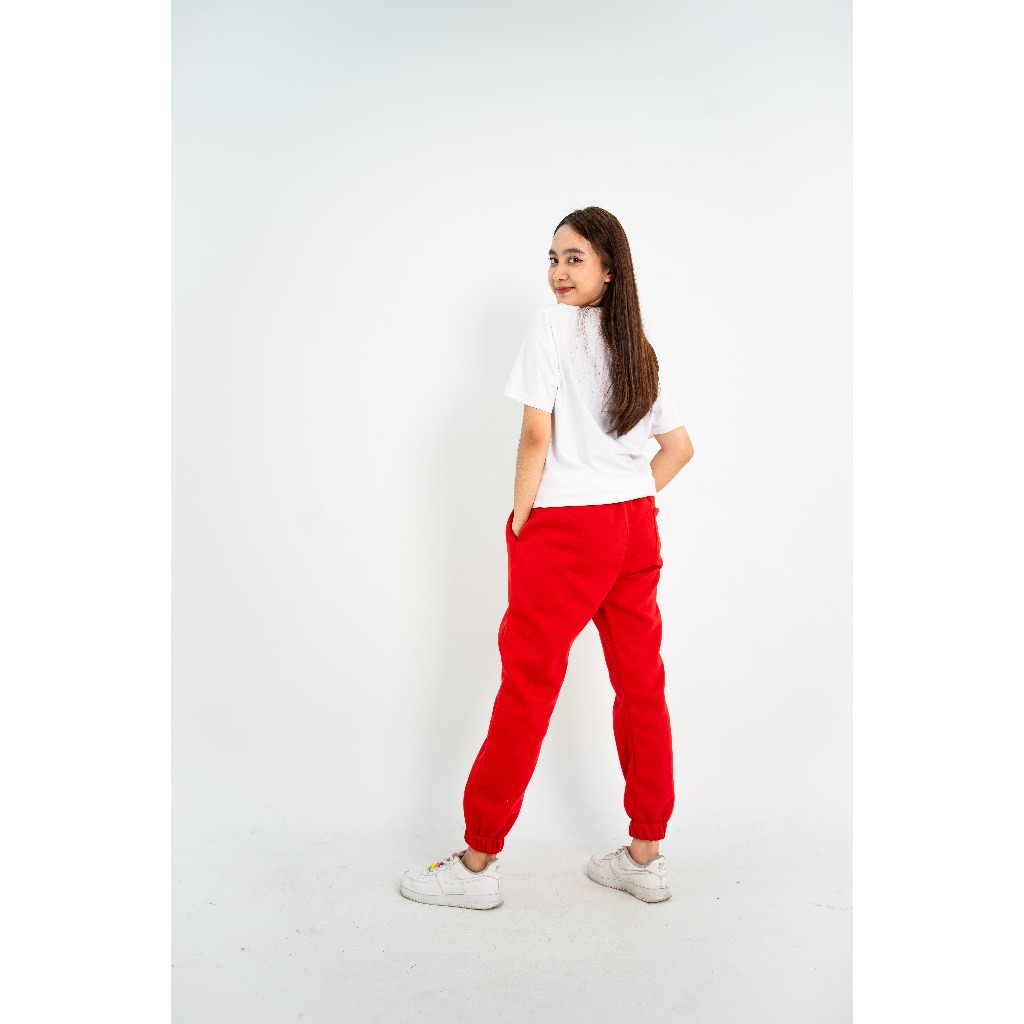 Spasmodic - Celana Jogger Wanita Pria Sweatpants Merah