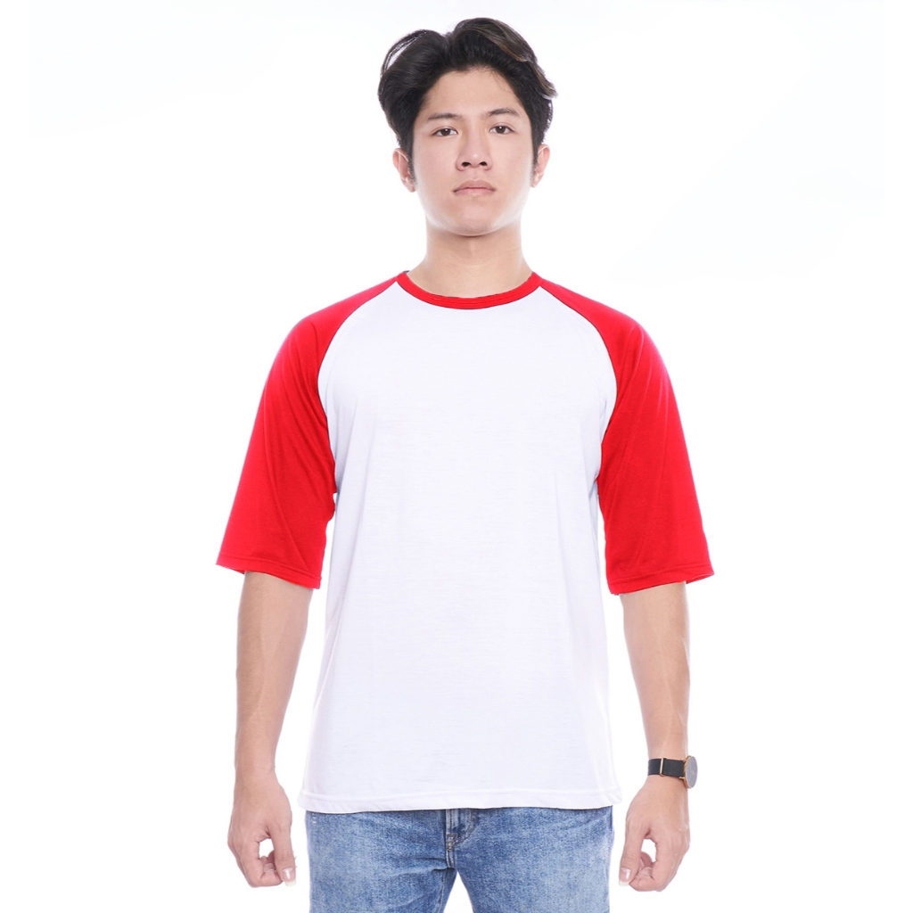Kaos Raglan Putih Merah Cabe Lengan Pendek | 3/4 | Panjang