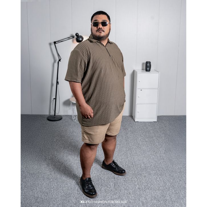 Kaos Polo XLUNO Zipper Polo Olive Baju Polo Pria Jumbo Knit Big Size Lengan Pendek