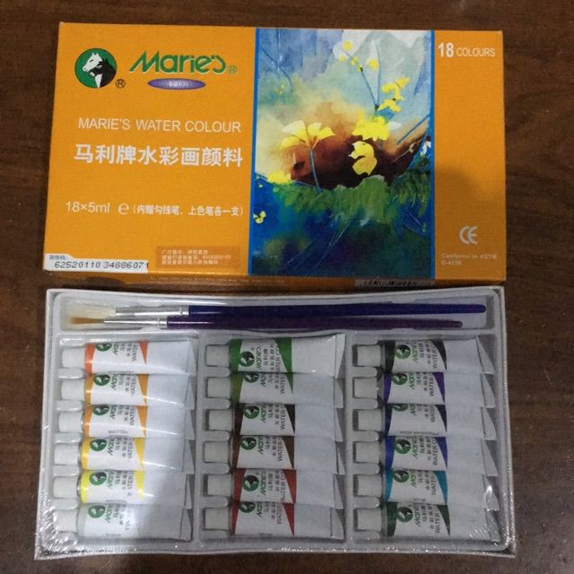 Maries Cat Lukis Watercolor 18x5ml dan 12x5ml Cat Air Lukis 18 dan 12 Warna Watercolour E1327