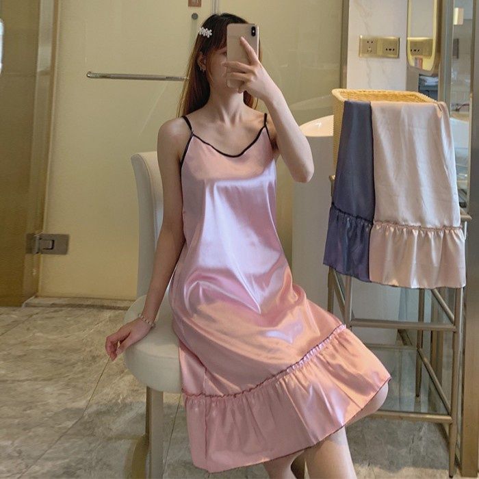 Daster Tanktop Wanita Bahan Silk Import Baju Tidur Piyama Tanktop