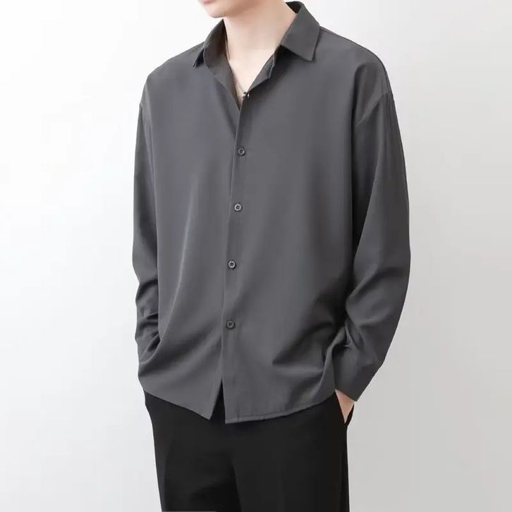 (Gratis Ongkir) Kemeja Polos Hitam Mewah Pria Kasual Dan Kerja Lengan Panjang Ukuran M L XL