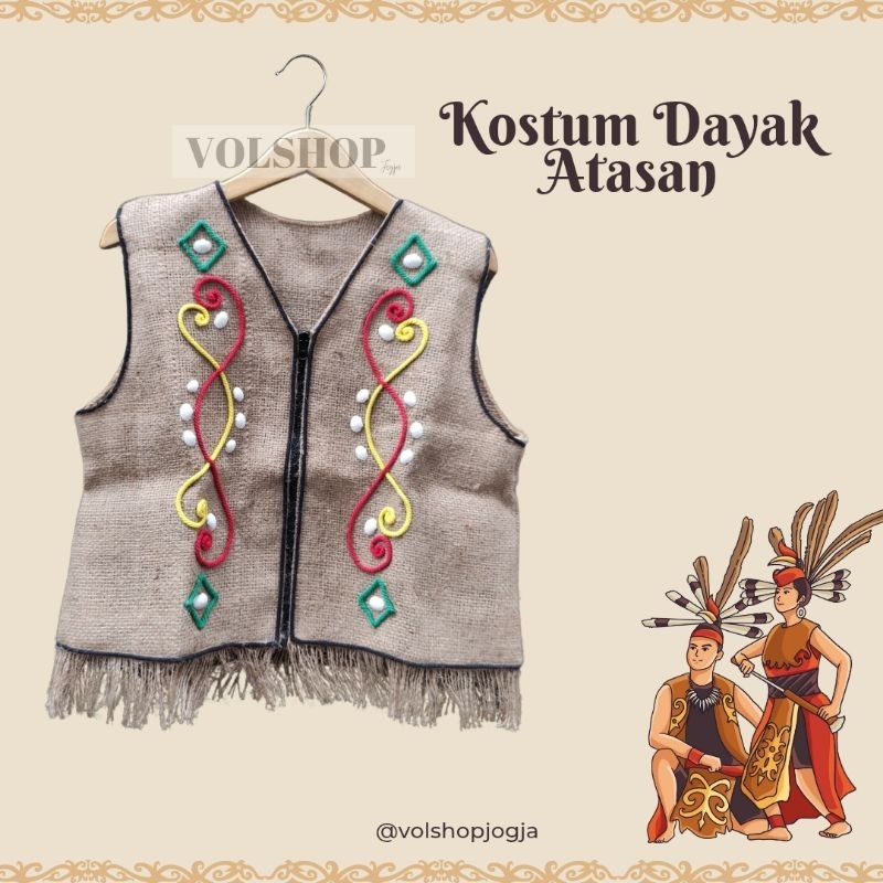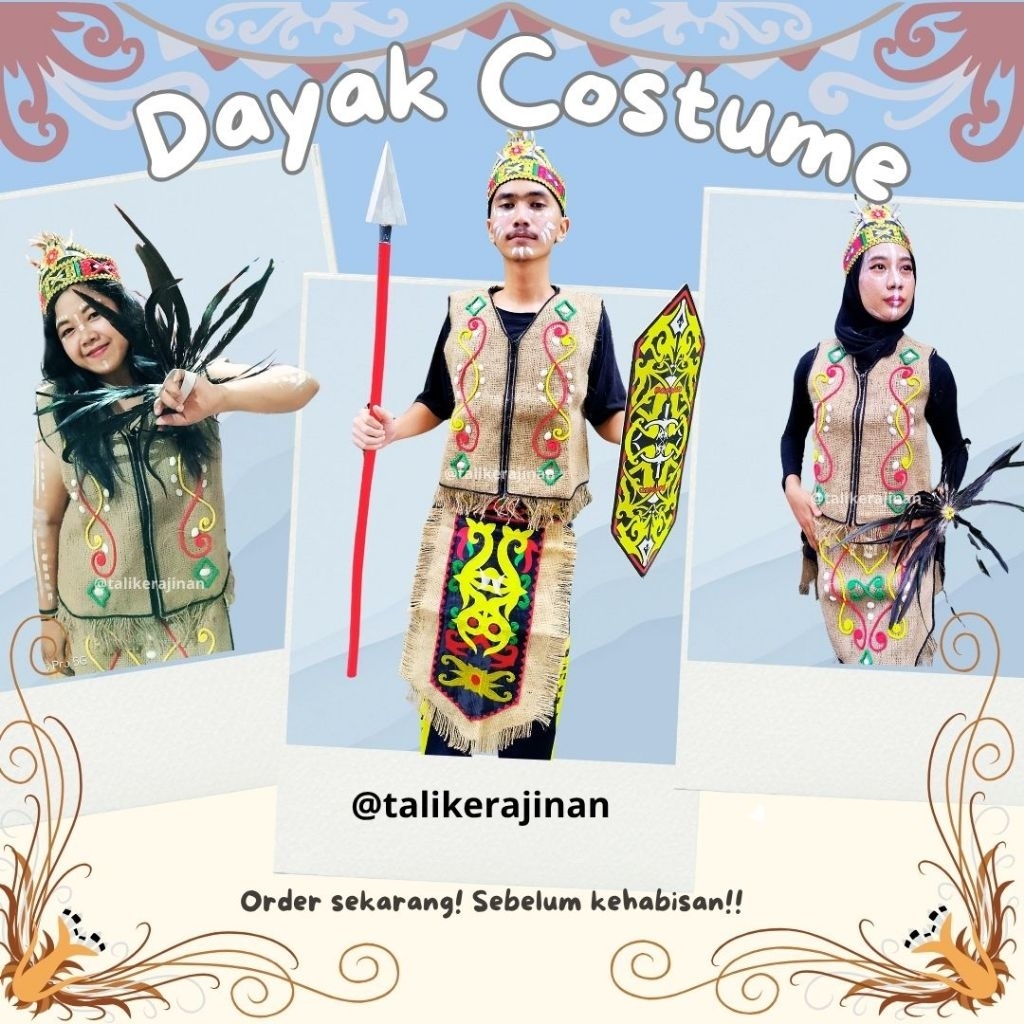 KOSTUM DAYAK BAJU ADAT KALIMANTAN PRIA/WANITA PAKAIAN TRADISIONAL KALIMANTAN SUKU DAYAK SETELAN ROMPI GONI READY SIAP KI