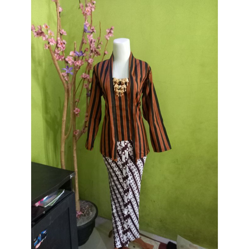 kebaya lurik kutubaru wanita dewasa dan rok plisket