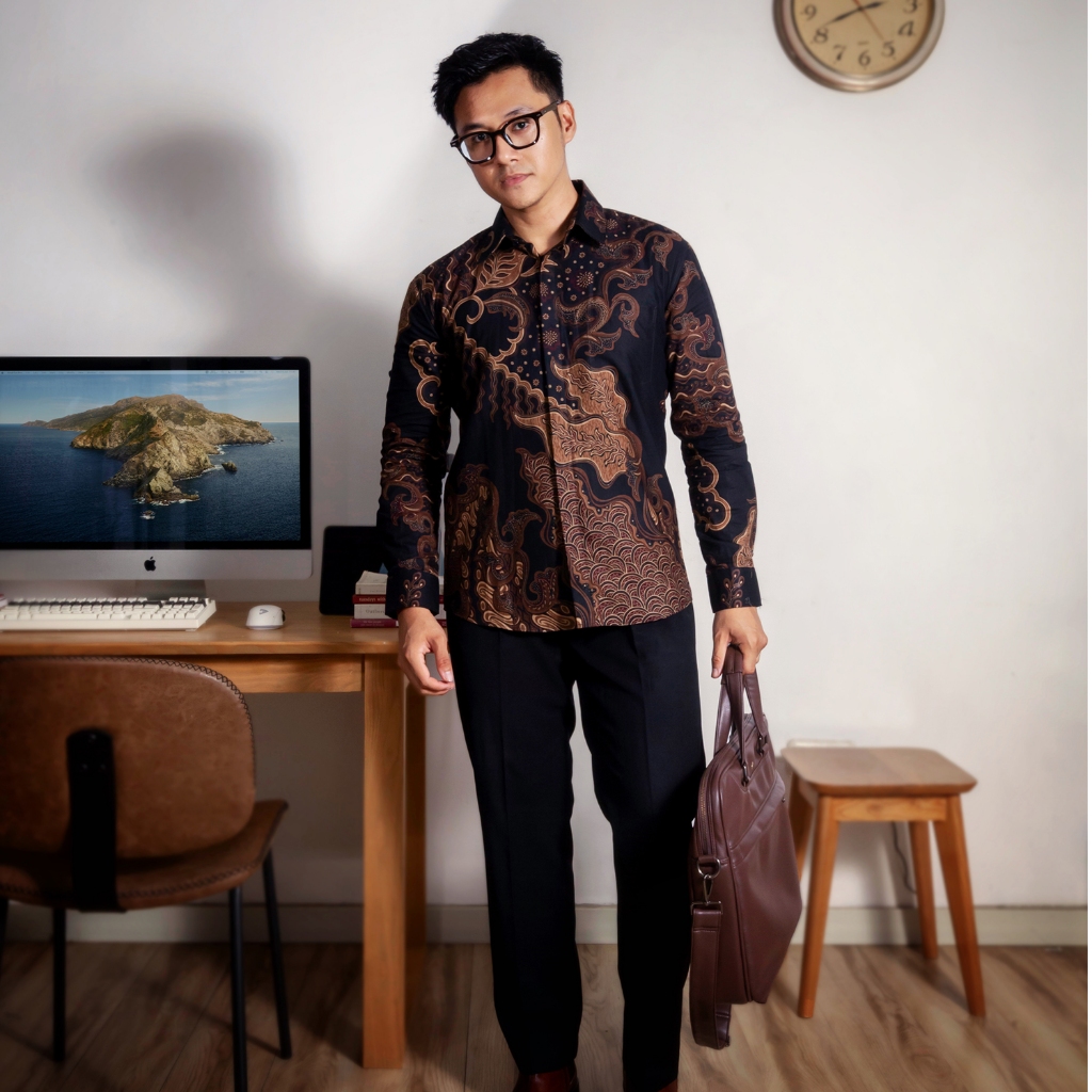 Enzy Batik Kemeja Batik Pria Ganesha - Black/Brown