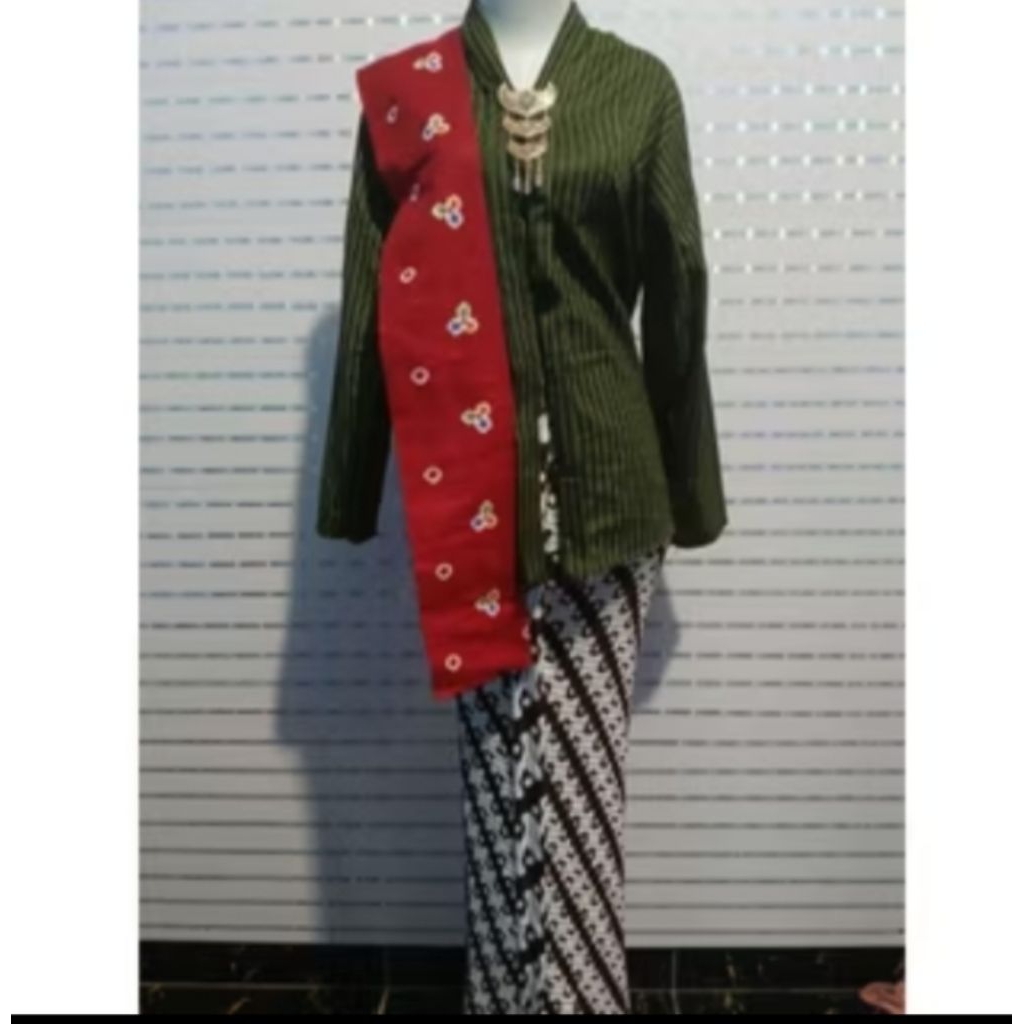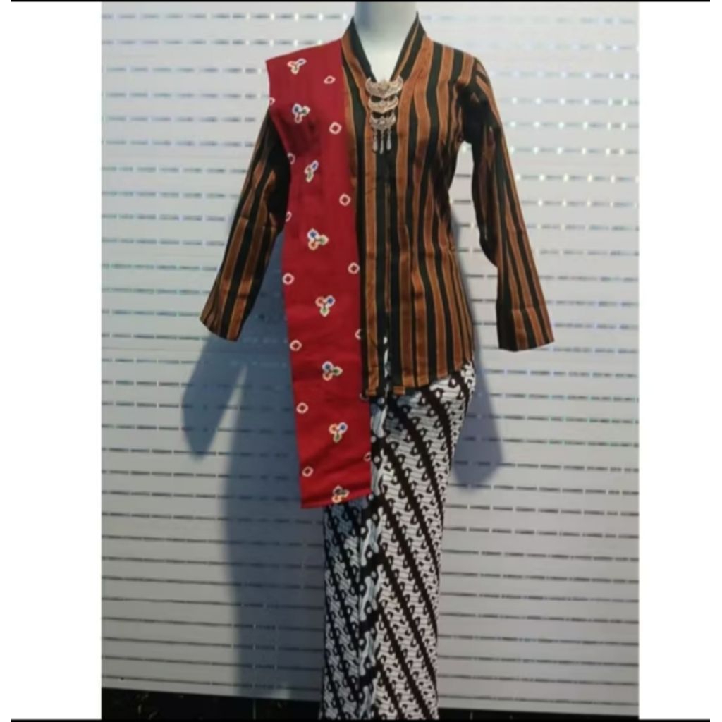 SET KEBAYA LURIK KARTINI +ROK PLISKET+SLENDANG+FREE BROS
