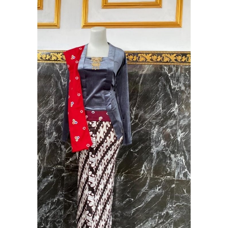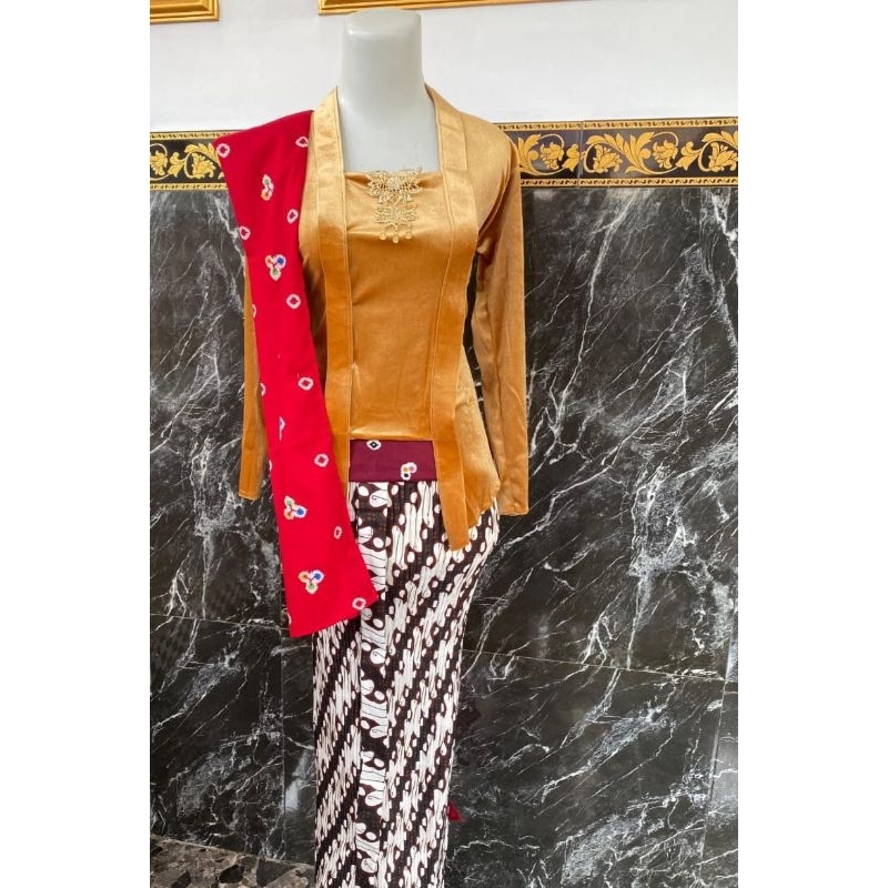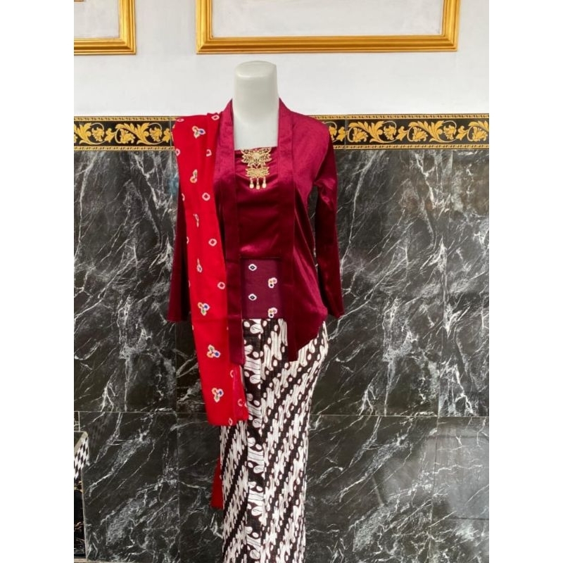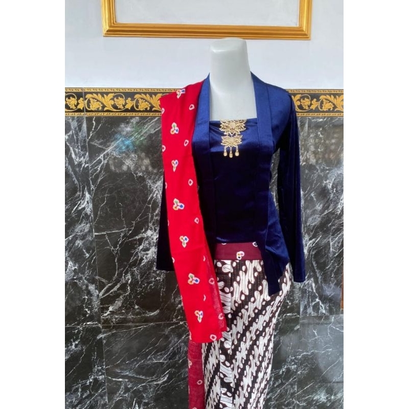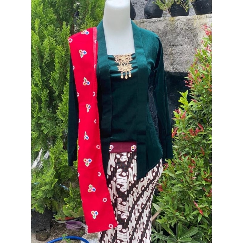 (setelan) kebaya beludru kutubaru free selendang merah