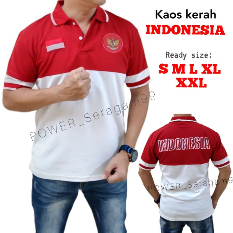 kaos kerah merah putih INDONESIA / poloshirt bendera merah putih