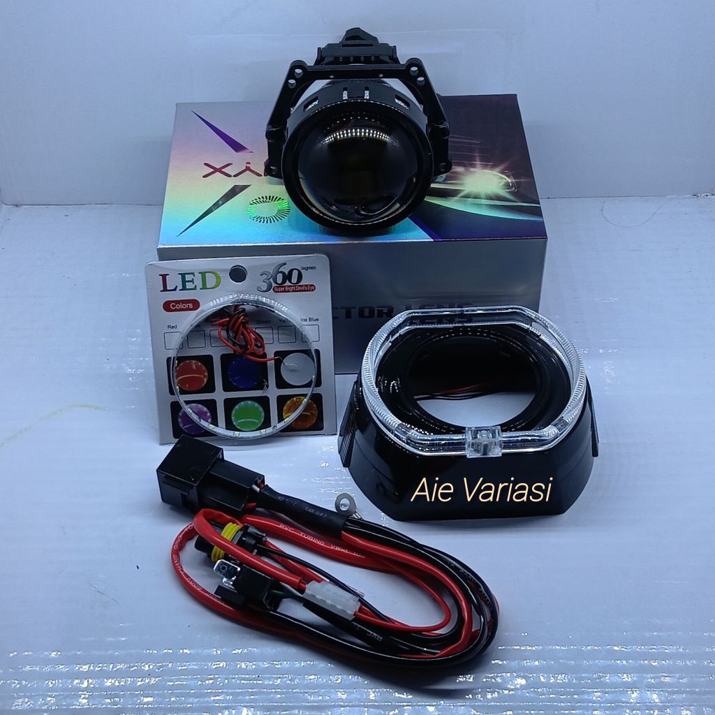 PAKET HEMAT LAMPU UTAMA PROJECTOR PROJIE BILED 3 INCHI PURPLE LENS P65 GEN 2 VINYX