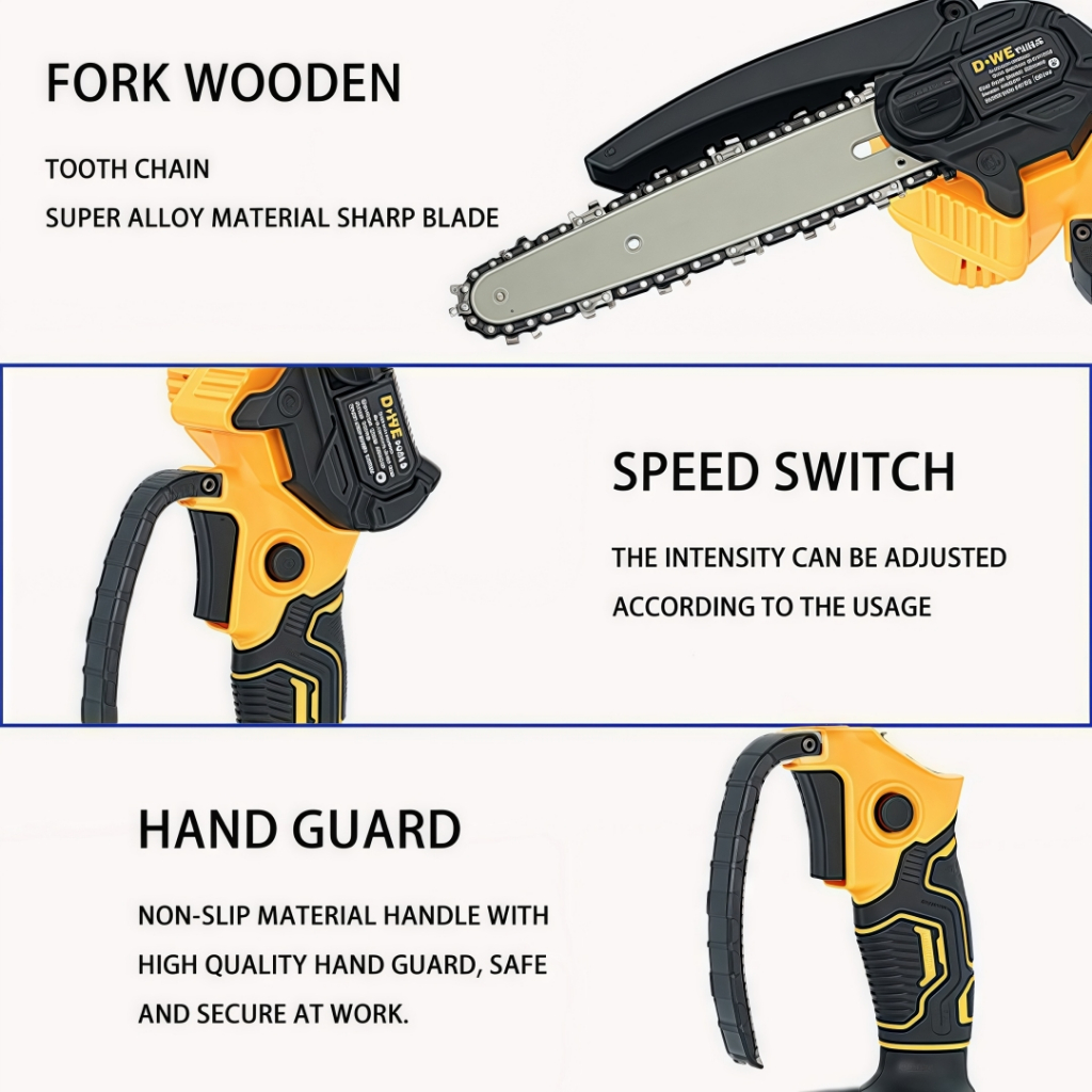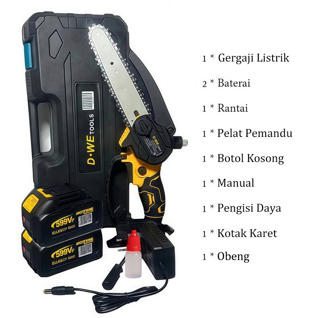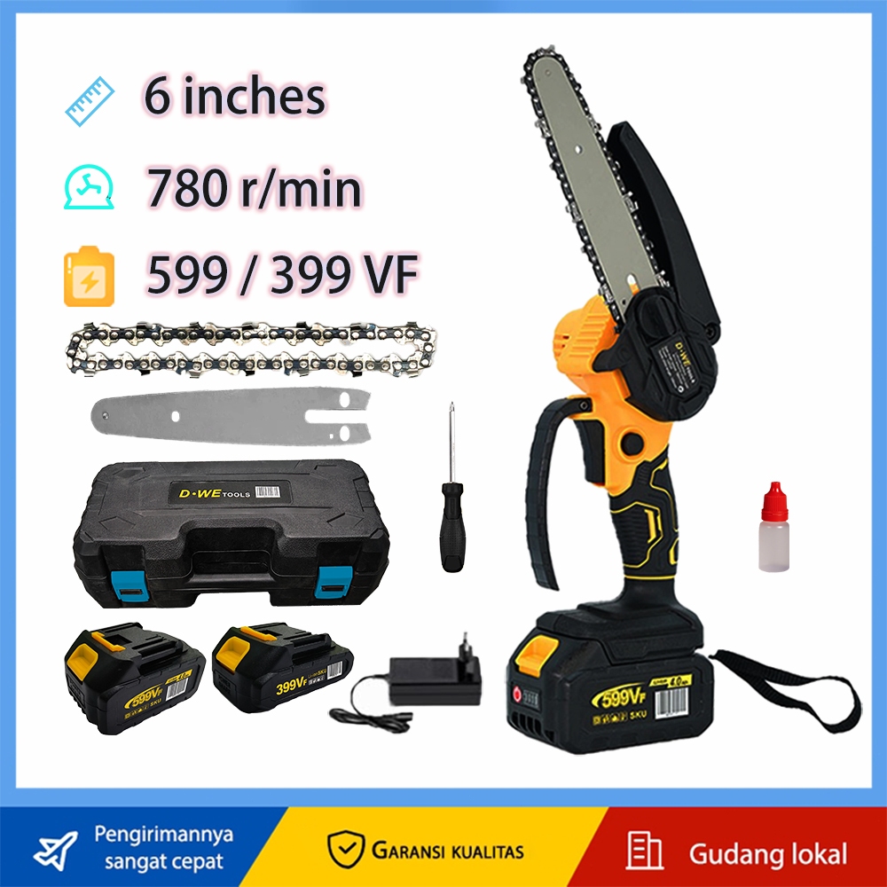 D·WE 780RPM 6 Inci Gergaji Brushless Efisien 18m/dtk Chainsaw Portable Mini Gergaji Rantai Ringan
