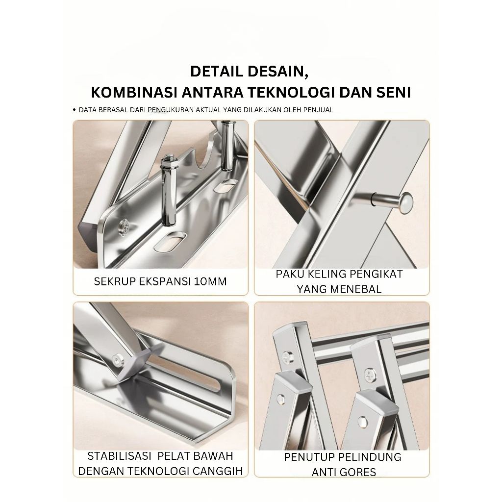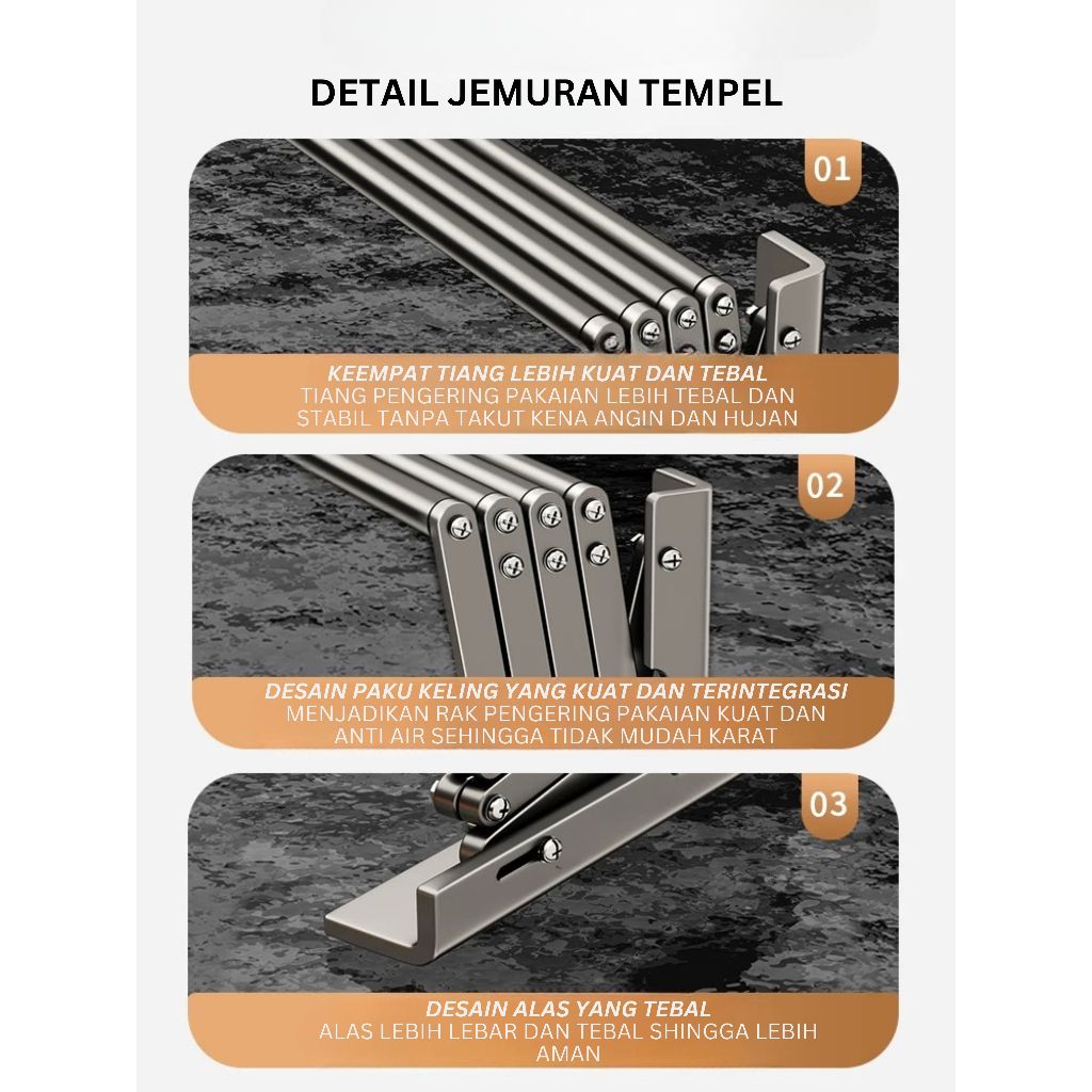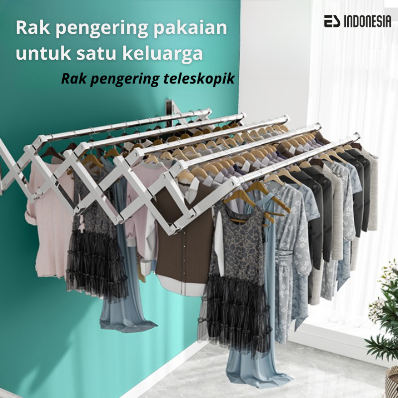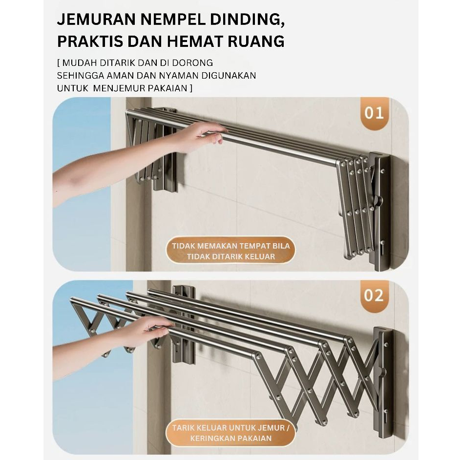 ESINDO Jemuran Baju Tempel Dinding Lipat /Tarik - Rak Jemuran Pakaian Basah Lipat Rak Jemuran Tembok