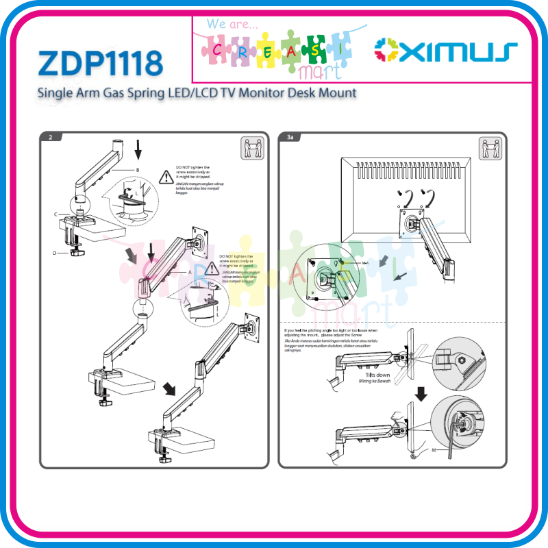Oximus ZDP1118 Bracket Meja Single Arm Gas Spring Desk Mount Monitor/TV/LCD/LED VESA Maximal 100x100