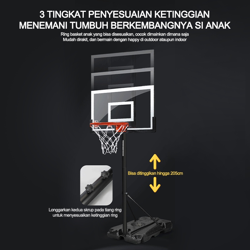 Bingkai Basket 2.05-2.36m / Ring Basket Portable Anak Dan Dewasa Bisa Diatur Naik Turun / Stand bola Basket pengang katy