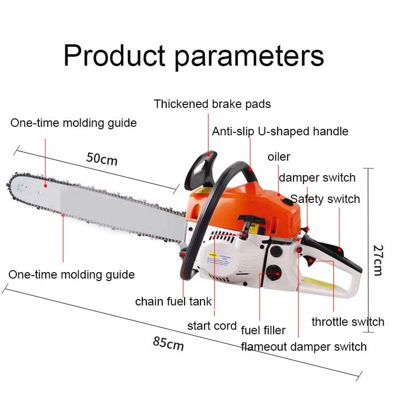Mesin Gergaji / Chain Saw merk uchiha japan SPESIFIKASI Model CS5200 CS5800 : -Dimensi luar:LXWXH 412×260x272 412×265