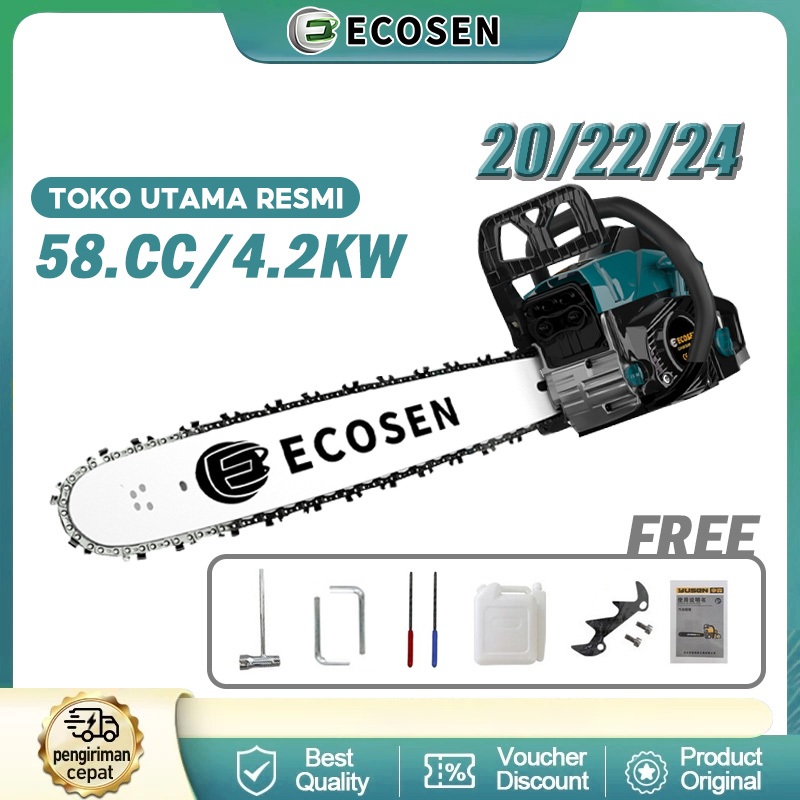 ECOSEN Mesin Potong Kayu 58CC Chainsaw 2Tak 20/22/24inch Mesin Gergaji Chainsaw Untuk Potong Kayu Alat Pemotong Gergaji