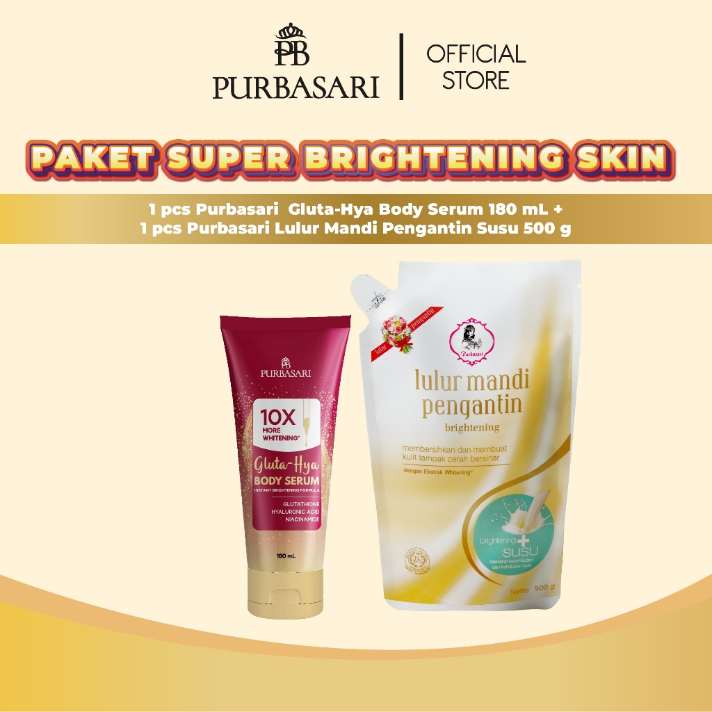 [PAKET SUPER BRIGHTENING SKIN] Purbasari Body Serum Gluta Hya 180ML + Lulur Mandi Pengantin 500GR