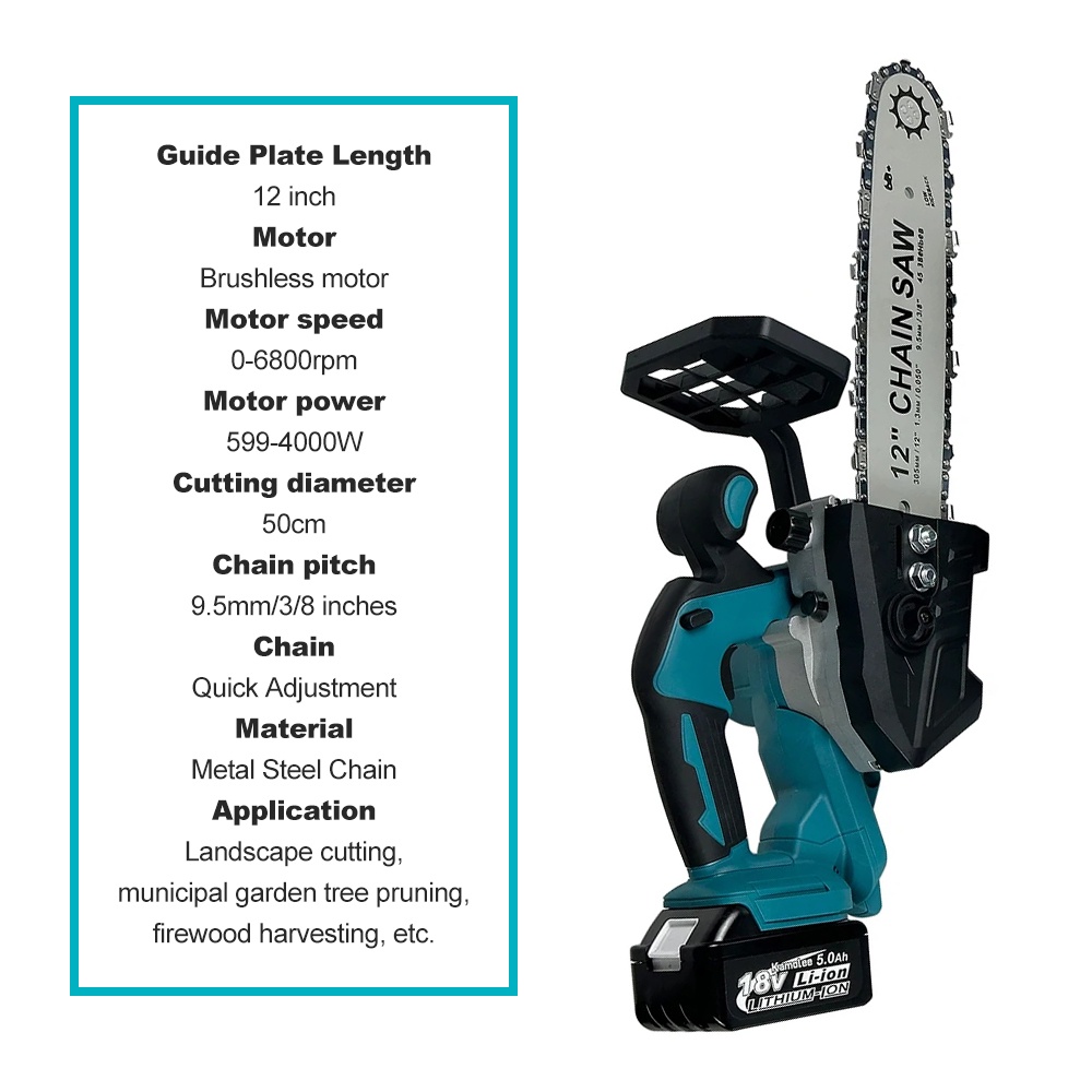 Kamolee 12" Brushless Electric Chainsaw Pruning Chainsaw Garden Tree Logging Pruning Saw Wood Cutter [Compatible with Ma