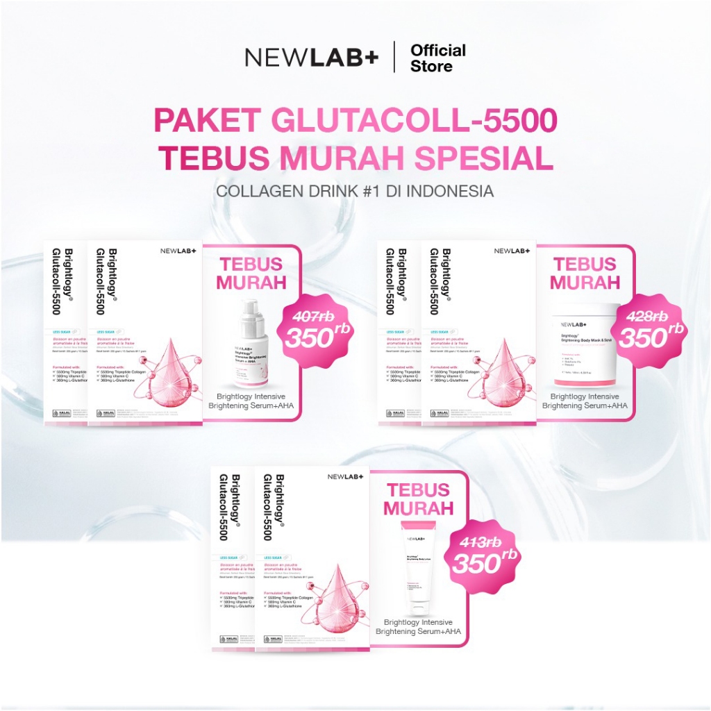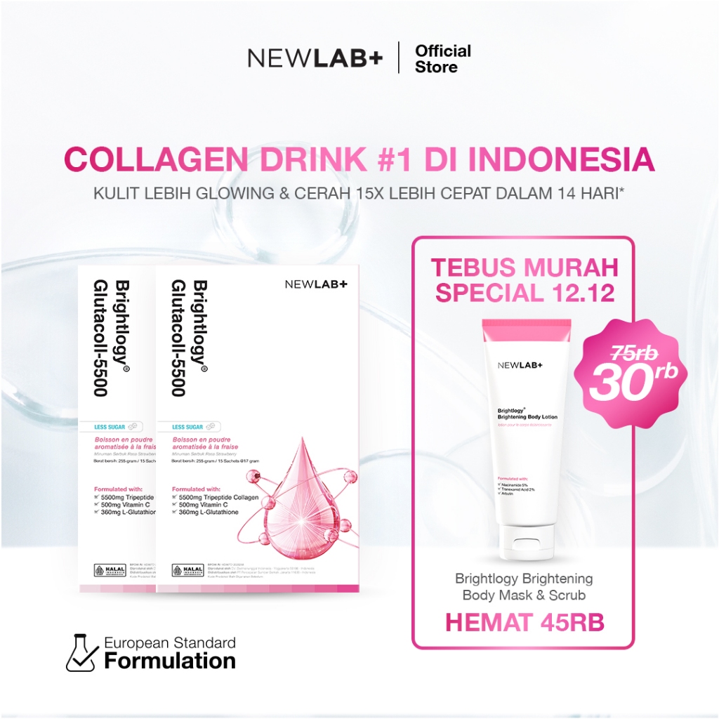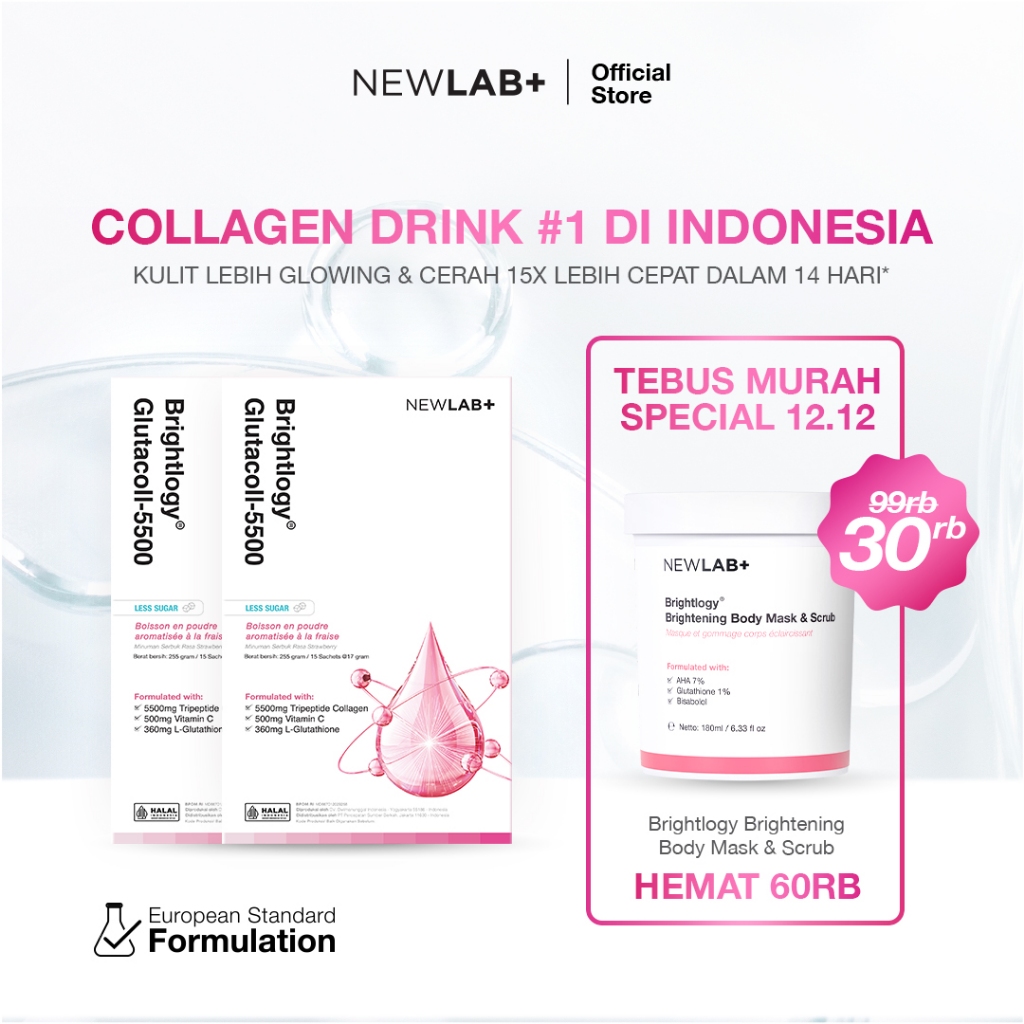 [SPESIAL TEBUS MURAH BODY CARE 30RB] NEWLAB Paket 2 Box Brightlogy GlutaColl-5500 | Minuman Collagen Drink Pemutih Badan BPOM | Glutathione Whitening 30 Sachet