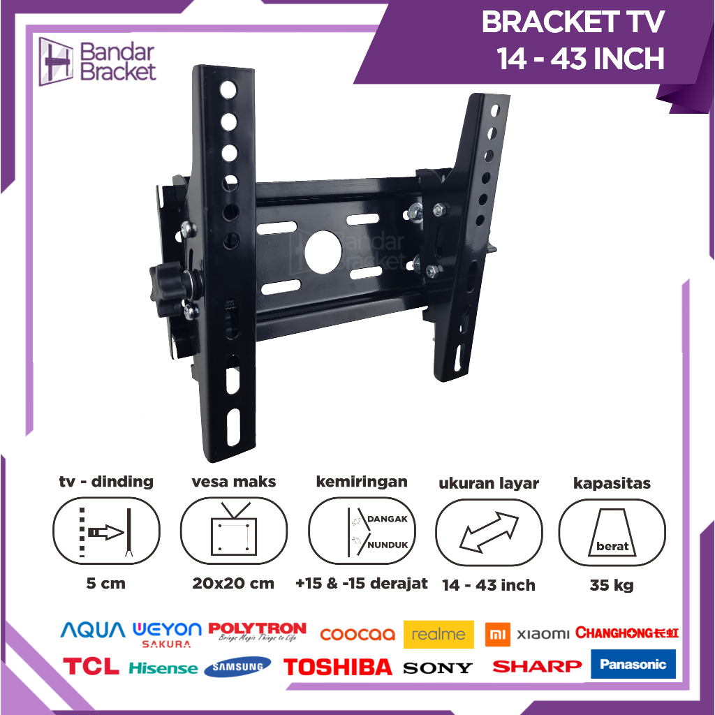 Bracket TV LED LCD 32 40 43 24 21 29 17 14 Inch Dijamin Cocok 14 - 43 In 2 Arah Universal Breket TV Briket TV Braket TV Bracket TV Gantungan TV Tembok Tempelan TV Dinding BNB1 Fasa