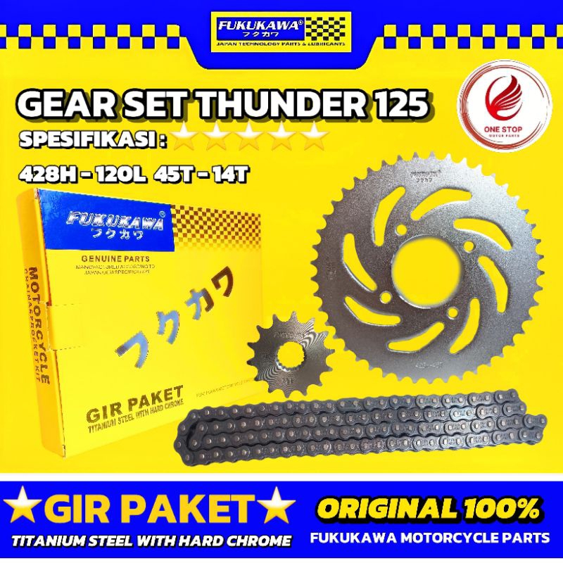 GEAR SET THUNDER 125 FUKUKAWA ORI 428H-120L 45T-14T GIR PAKET / GIR SET FKKW