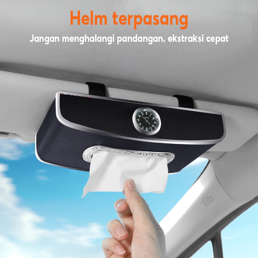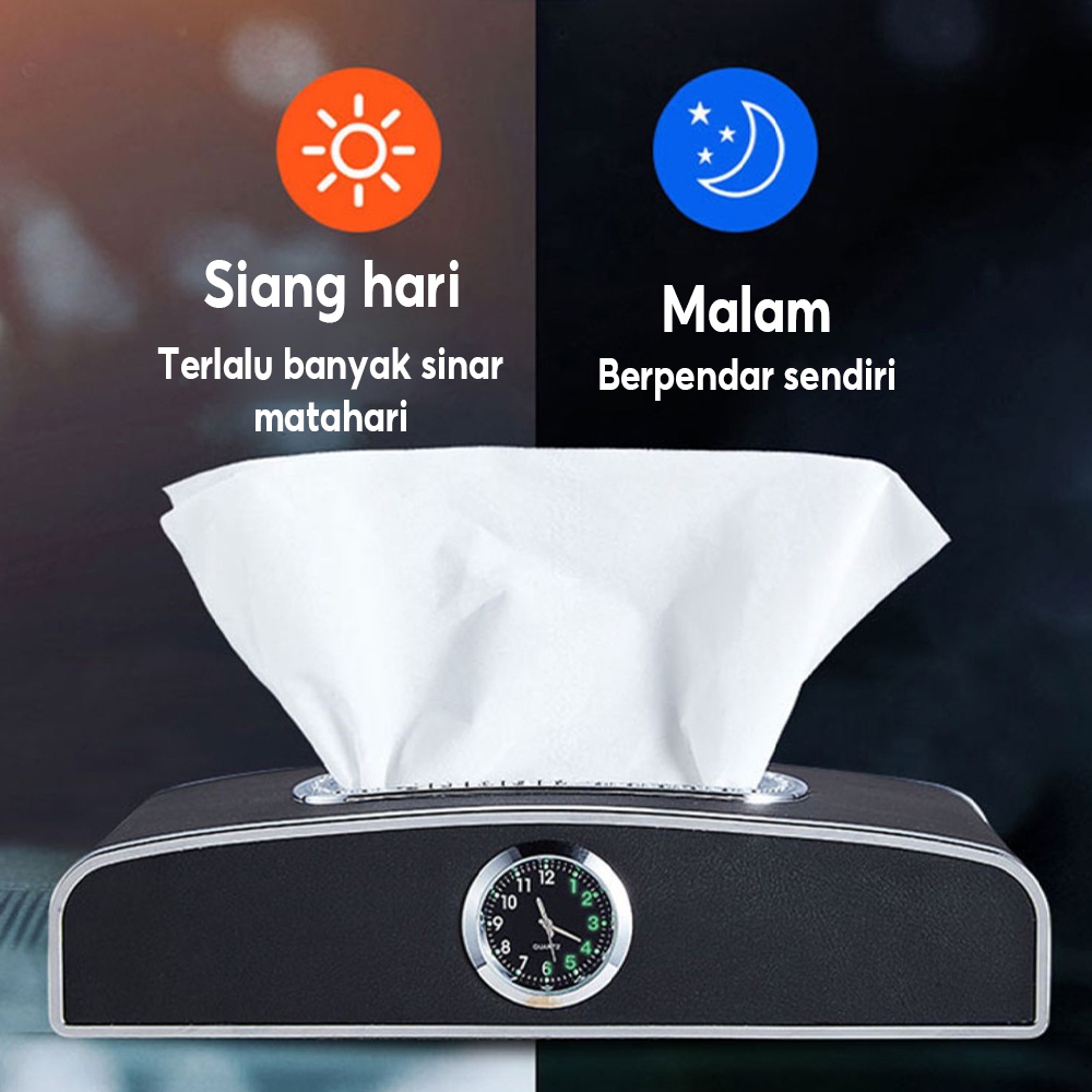 Tempat Tisu Mobil Premium Mewah Multifungsi Jam Car Tissue Box