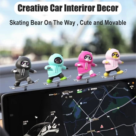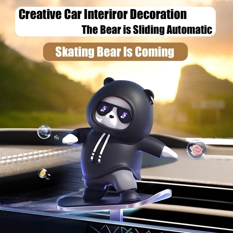 CAROOM Sliding Bear Dashboard Mobil Head Unit Instrument Display Sliding Scooter Car Ornament Dashboard Cover Dashboard Mobil Bear Sliding Ice Skating Mobil