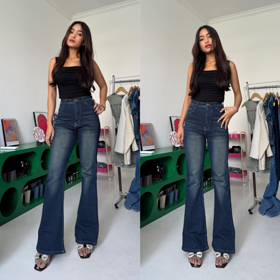 [Mall] VICTORIA HIGH WAIST CUTBRAY JEANS BLACK CELANA PANJANG FLARE WANITA HITAM