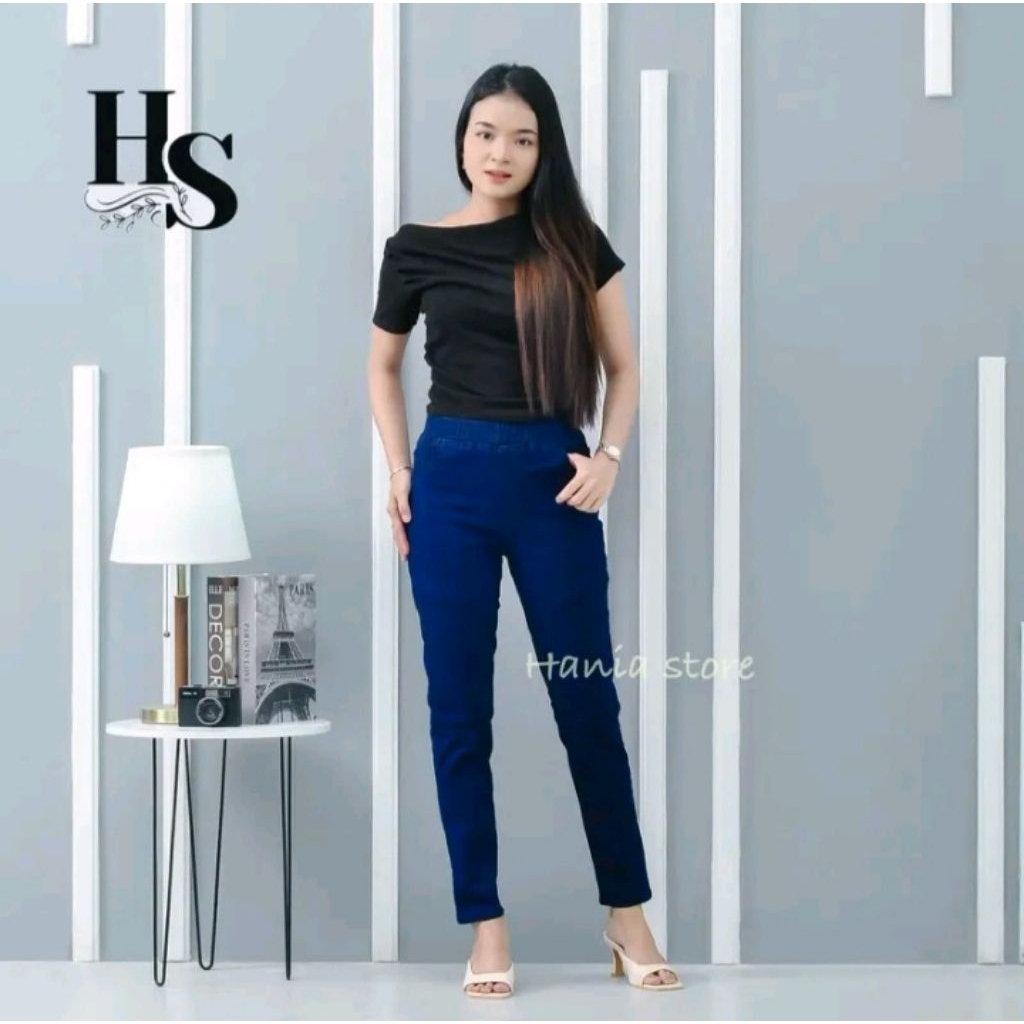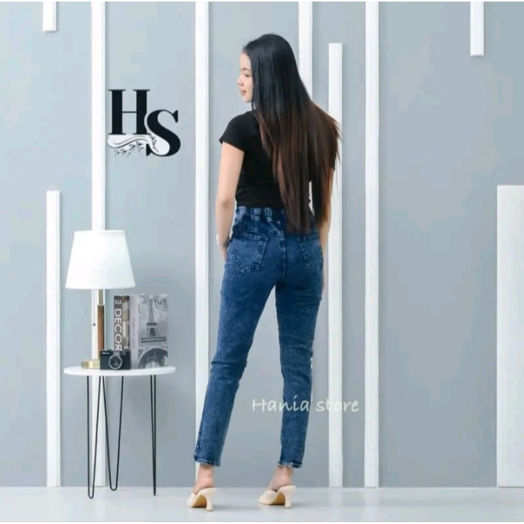 Celana Jeans Wanita Jumbo - Pinggang Karet - Denim Street Melar Bahan Premium Terbaru Kekinian