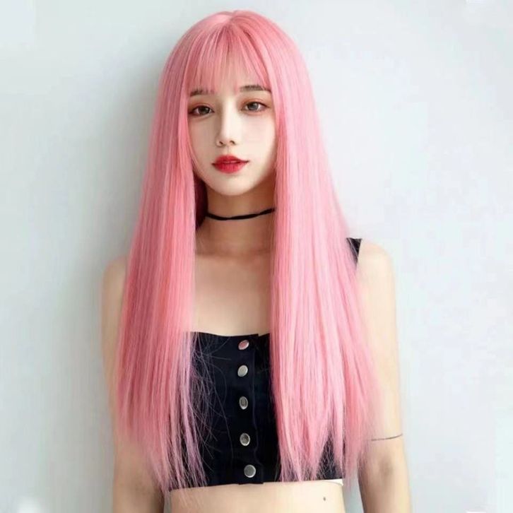 Wig Rambut panjang palsu wanita pink kostum anime cosplay jepang