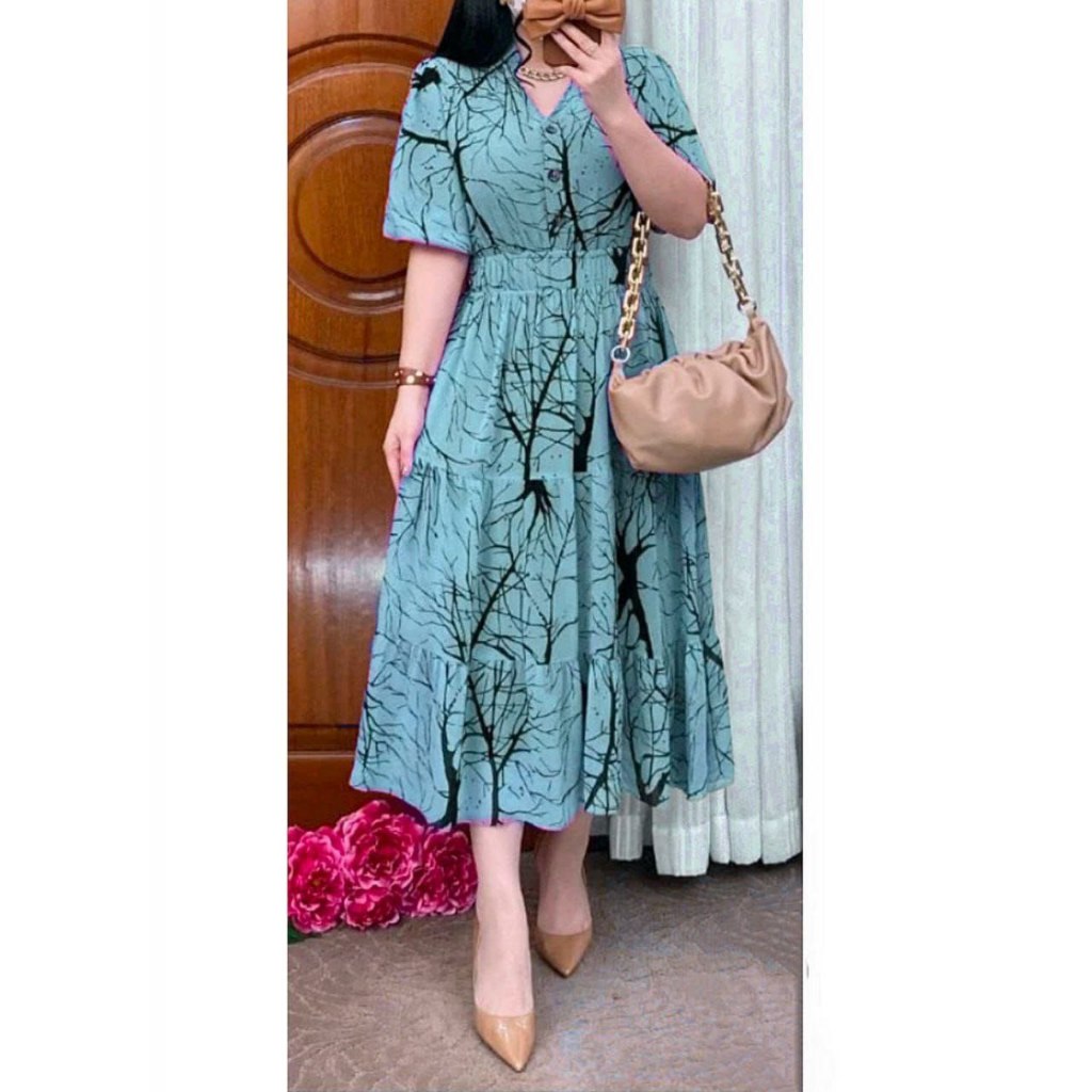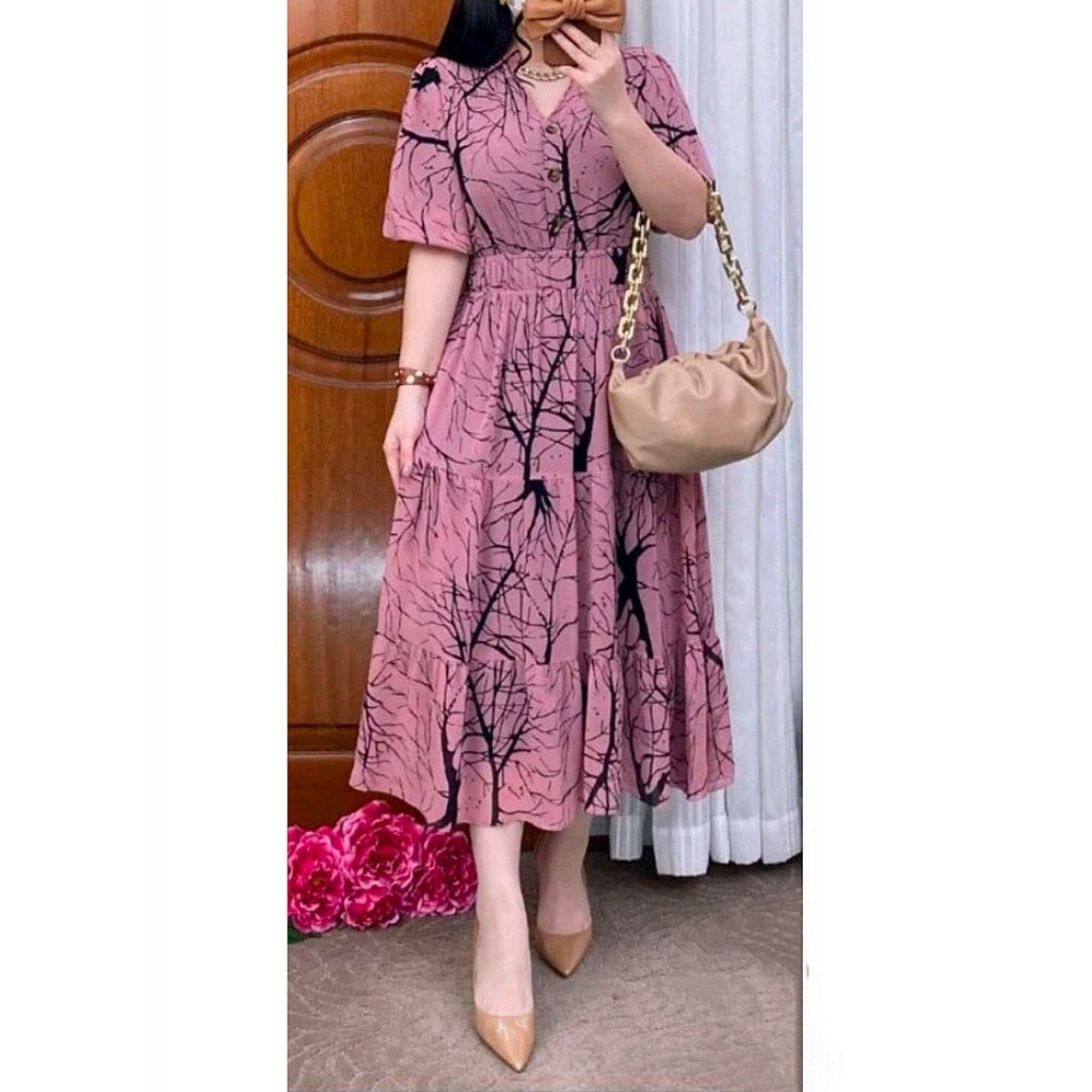 [Mall] DRESS WANITA KEKINIAN DRESS RUFFLE RAYON PREMIUM MIDI MOTIF BUNGA DASTER BUSUI KANCING DEPAN KERAH V