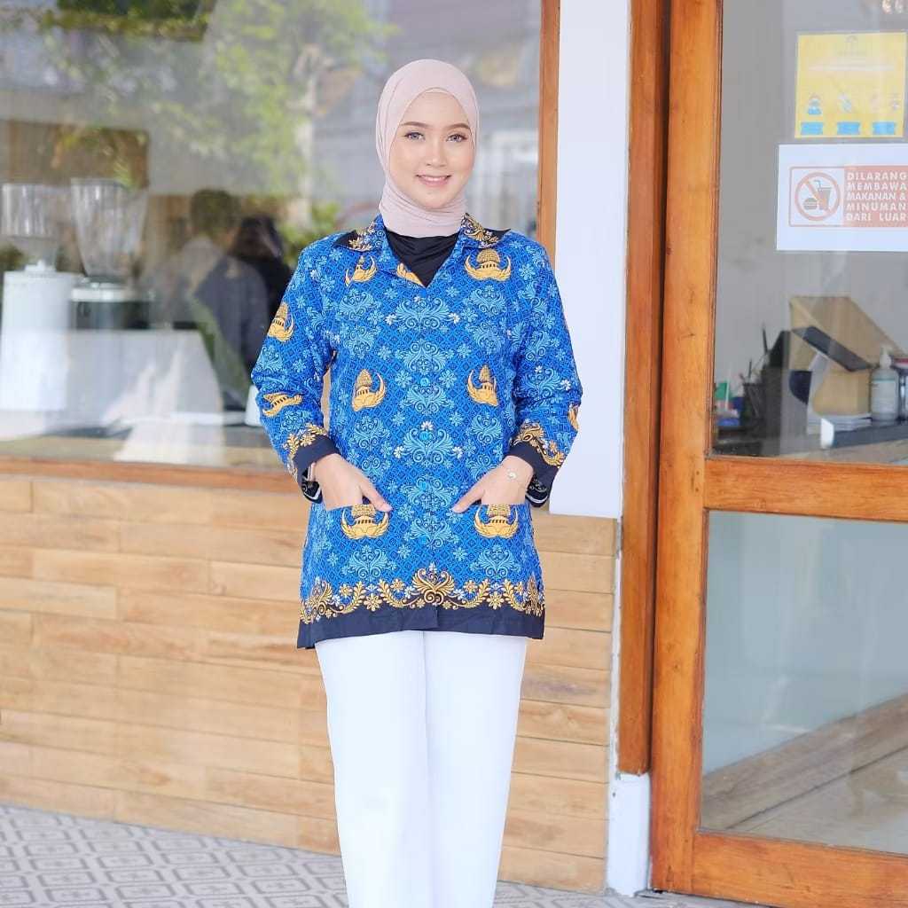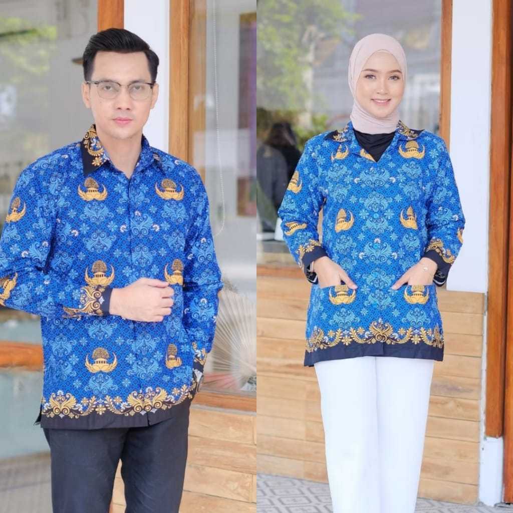 Korpri Terbaru 2025 Seragam Baju Atasan Kemeja Batik Wanita Pria Terbaru Lapis Furing 2022 Bahan Katun Halus 40S Lengan