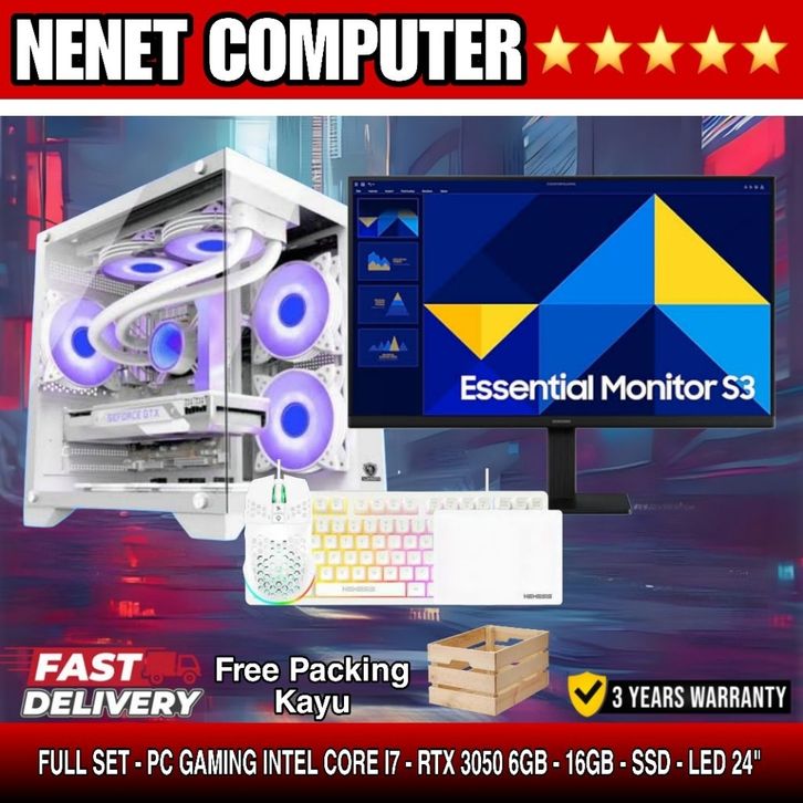 FULL SET - PC Gaming Intel Core i7 4770 | RTX 3050 6GB | 16GB | SSD | LED 24" - Siap Pakai
