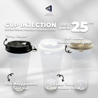 Thinwall Cup Injection Oval 380ml 12oz & 500ml 16oz / 700ml 24oz Datar / PP Cup Injection Reusable Kuat + Tutup / Gelas
