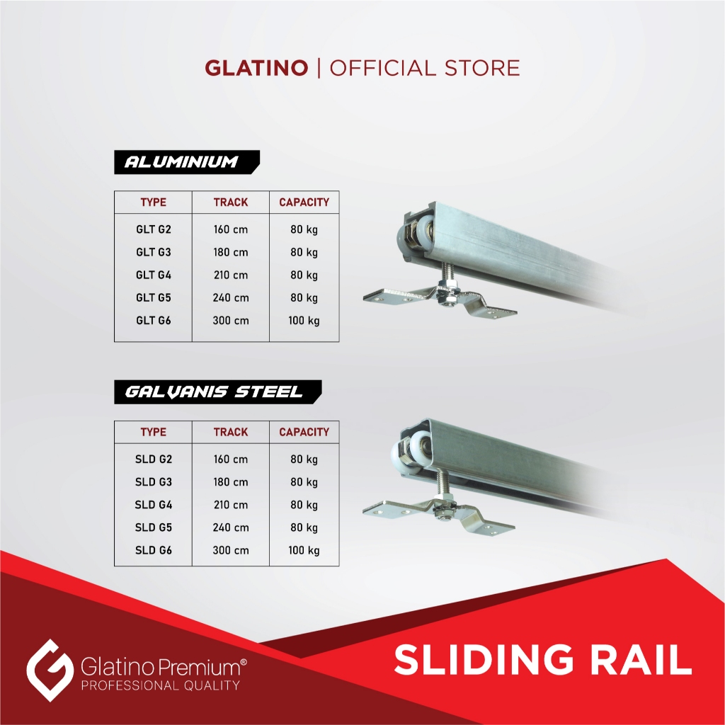 Glatino - Rel Pintu Geser Material Galvanis Steel Sleding Rail