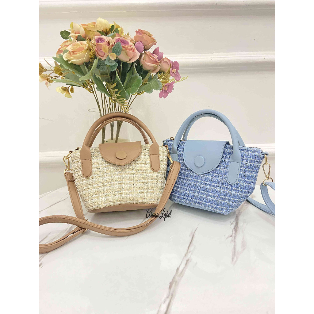 Tas selempang wanita/Slingbag wanita motif kotak rajut model korean style/Tas wanita /tas/tas wanita/tas slempang/