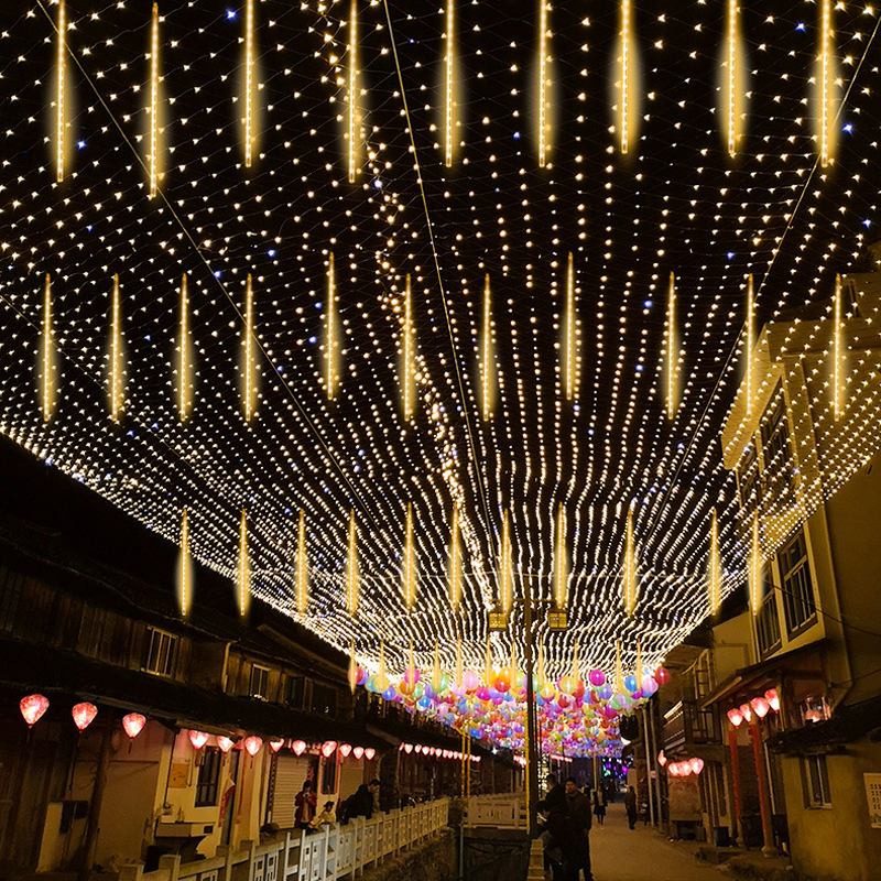 CICILAN DP RP 0 Lampu Meteor LED Hujan 50cm RGB /Warmwhite 1set 10batang