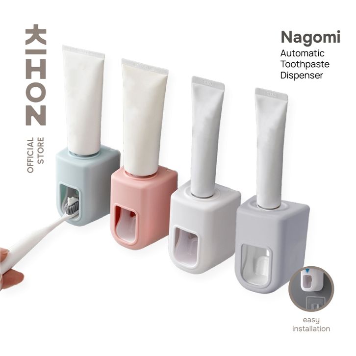 TERBARU KIHON NAGOMI Dispenser Pasta Gigi Otomatis Toothpaste Squeezer & Panel Cap Tempel Dinding ebidl
